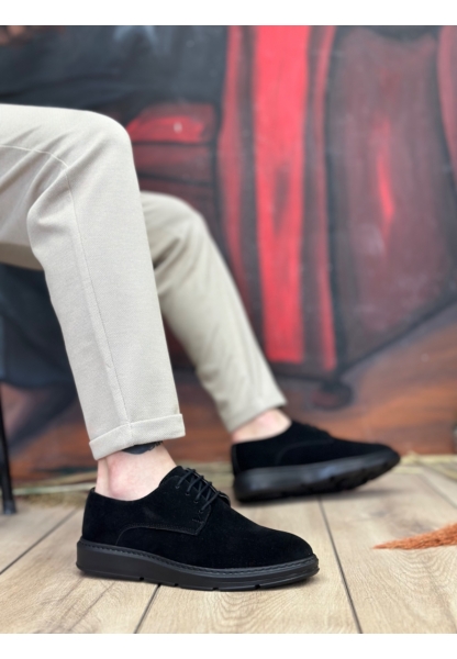 BA0003 Bağcıklı Klasik Siyah Siyah Taban Rugan Yüksek Taban Casual Erkek Ayakkabı
