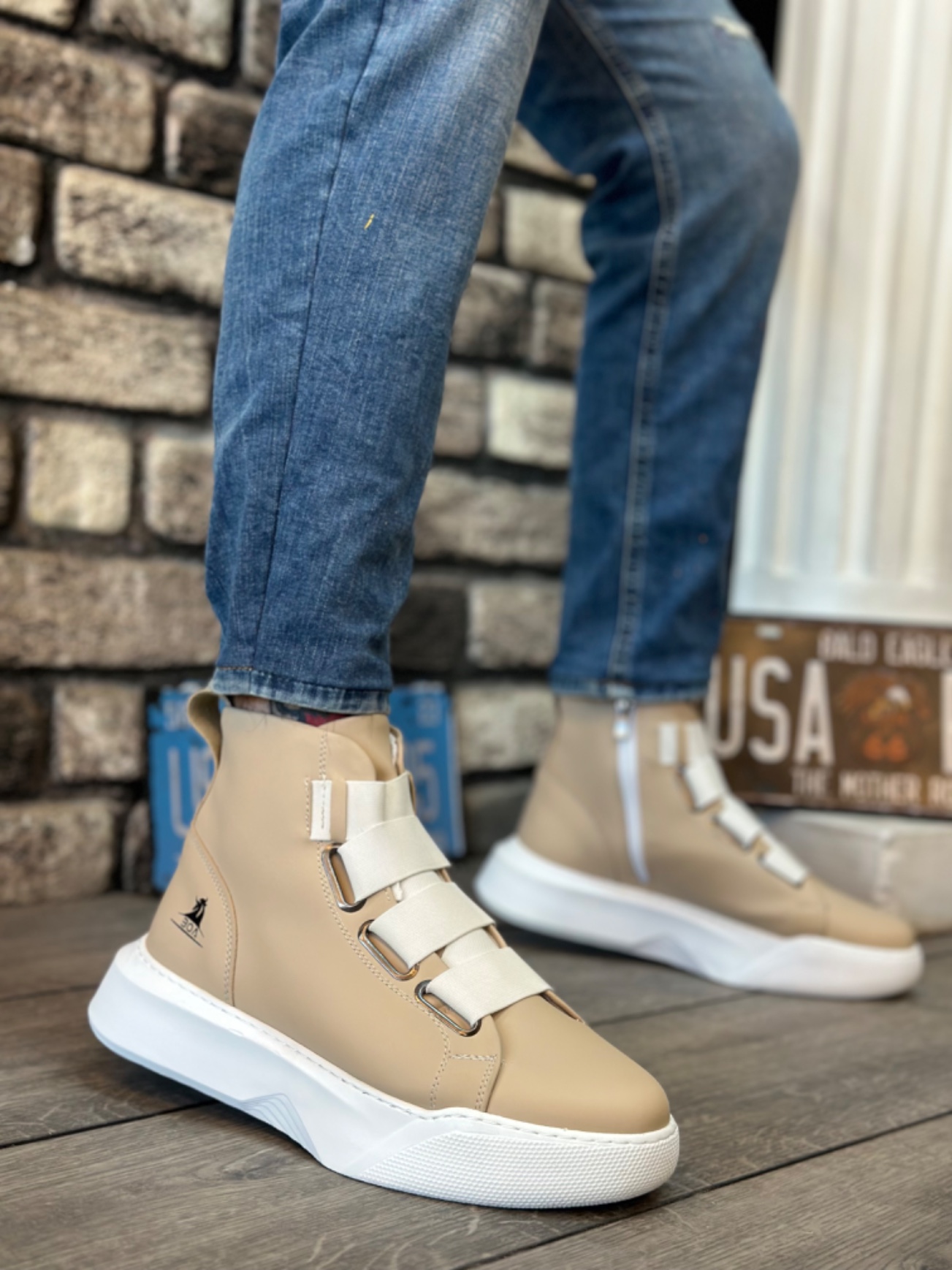 • BA0142 Bantlı Erkek Yüksek Taban Krem Beyaz Spor Bot