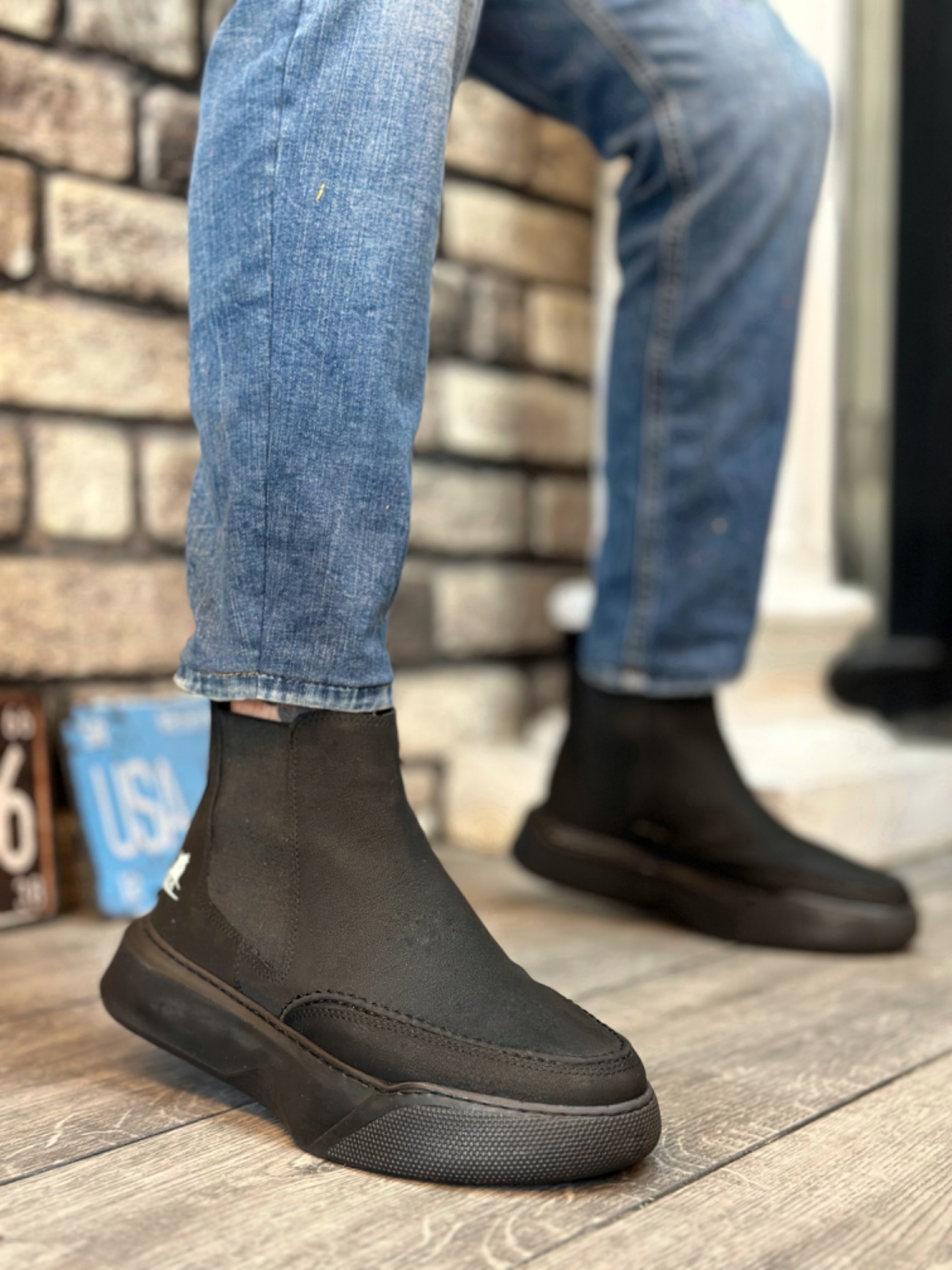 BA0150 Bağcıksız Bantlı Erkek Yüksek Taban Yeni Siyah Taban Spor Bot