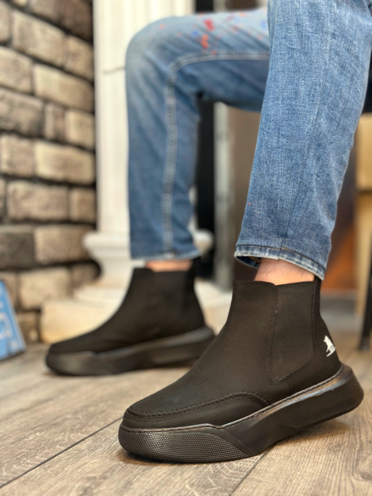 • BA0150 Bağcıksız Bantlı Erkek Yüksek Taban Yeni Siyah Taban Spor Bot