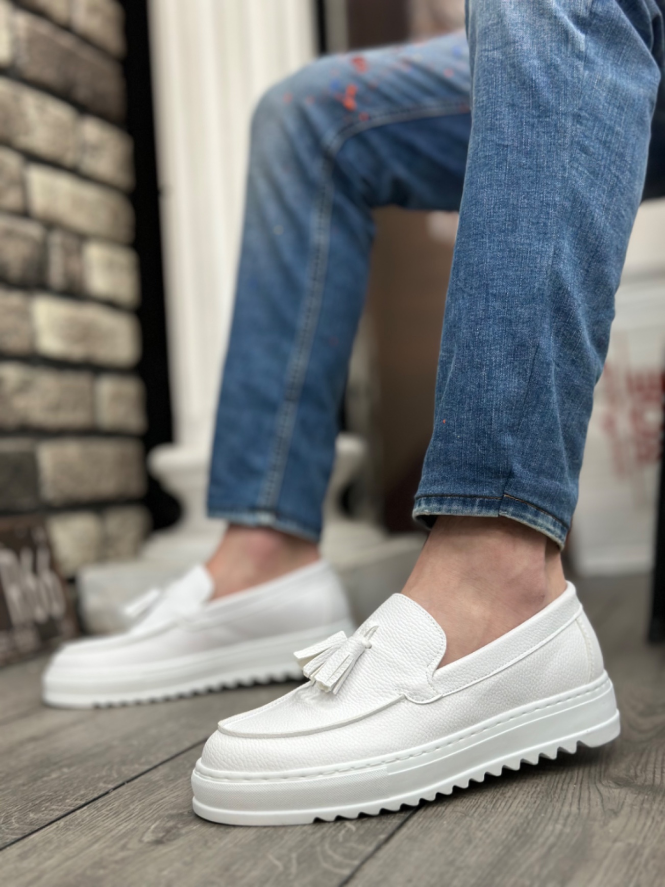 BA0154 Bağcıksız Yüksek Taban Cilt Beyaz Renk Püsküllü Erkek Ayakkabı