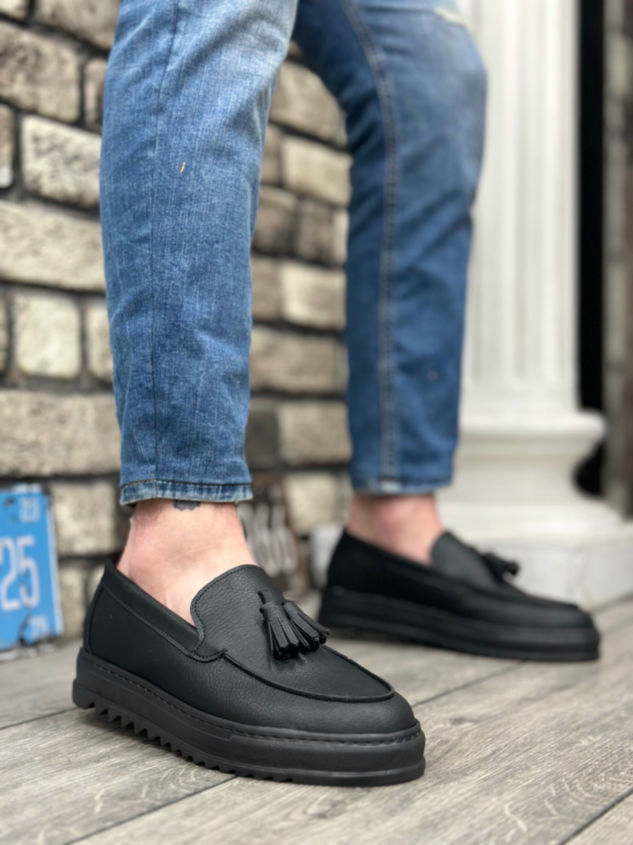 BA0154 Bağcıksız Yüksek Taban Cilt Siyah Renk Püsküllü Erkek Ayakkabı