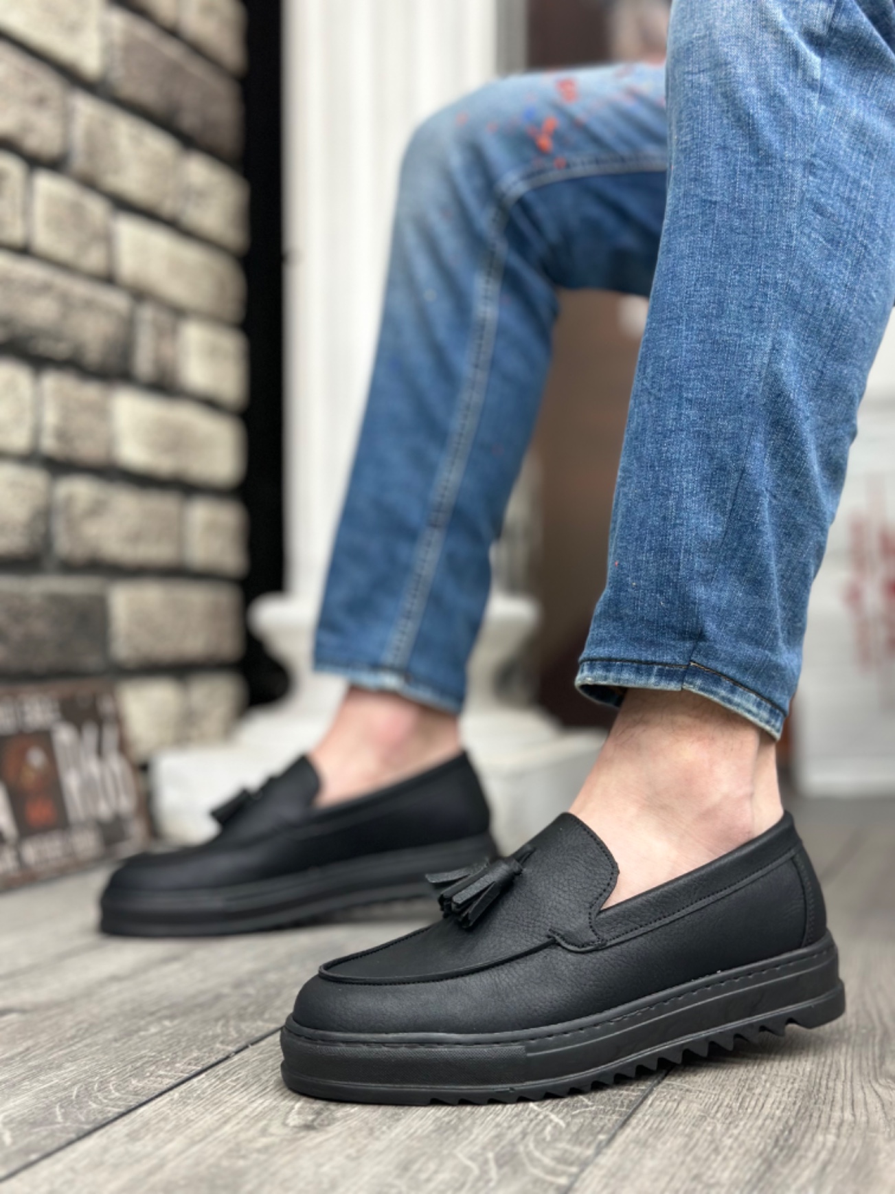 • BA0154  Bağcıksız Yüksek Taban Cilt Siyah Renk Püsküllü Erkek Ayakkabı