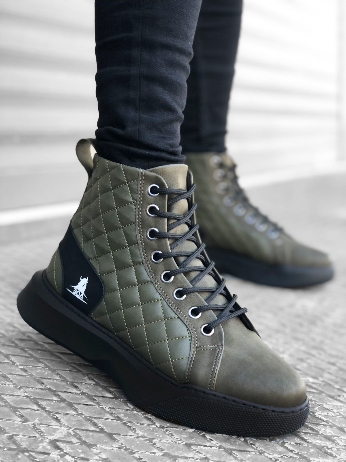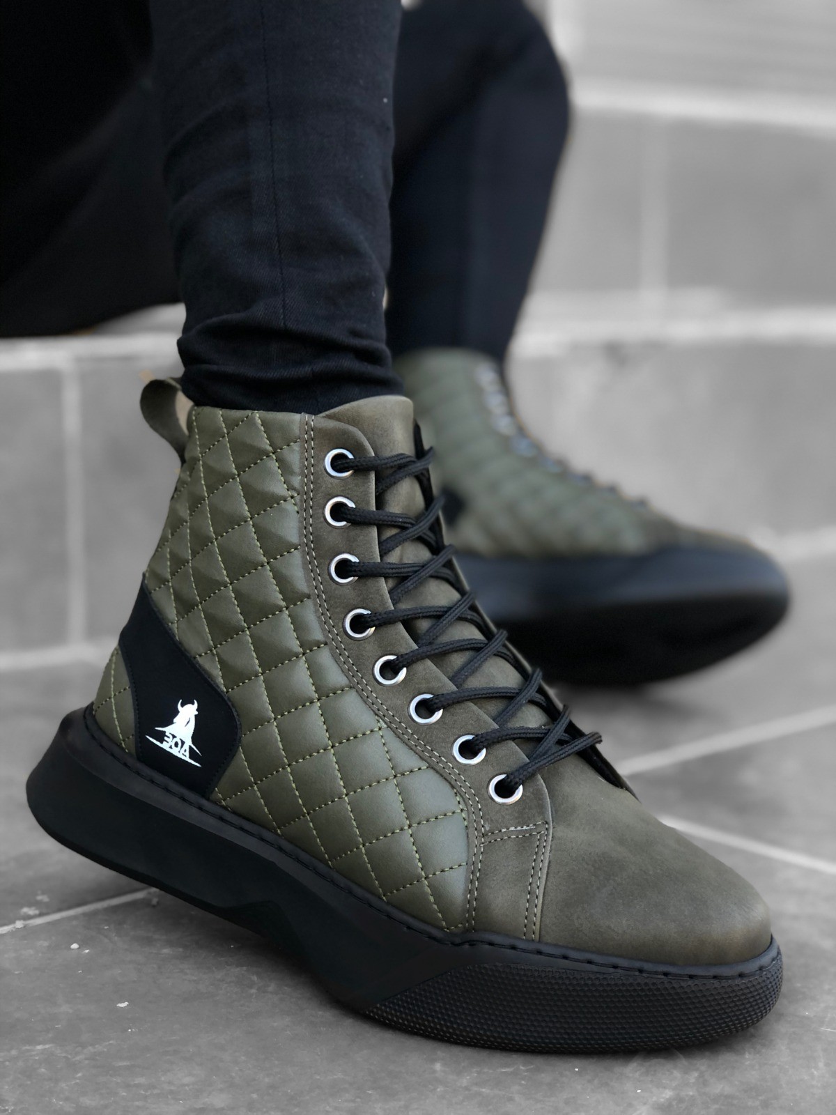 BA0159 Bağcıklı Haki Kapitone Erkek Yüksek Taban Spor Bot