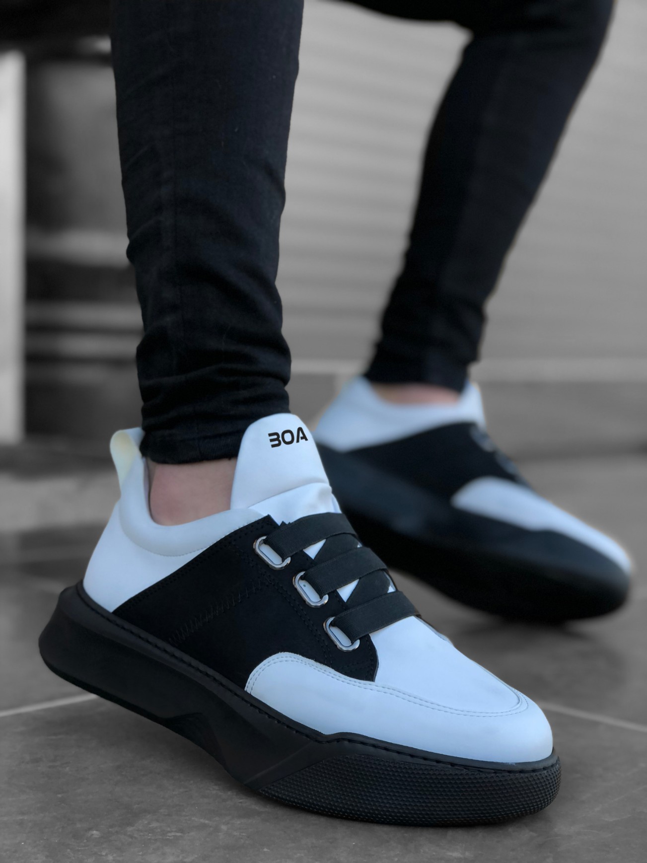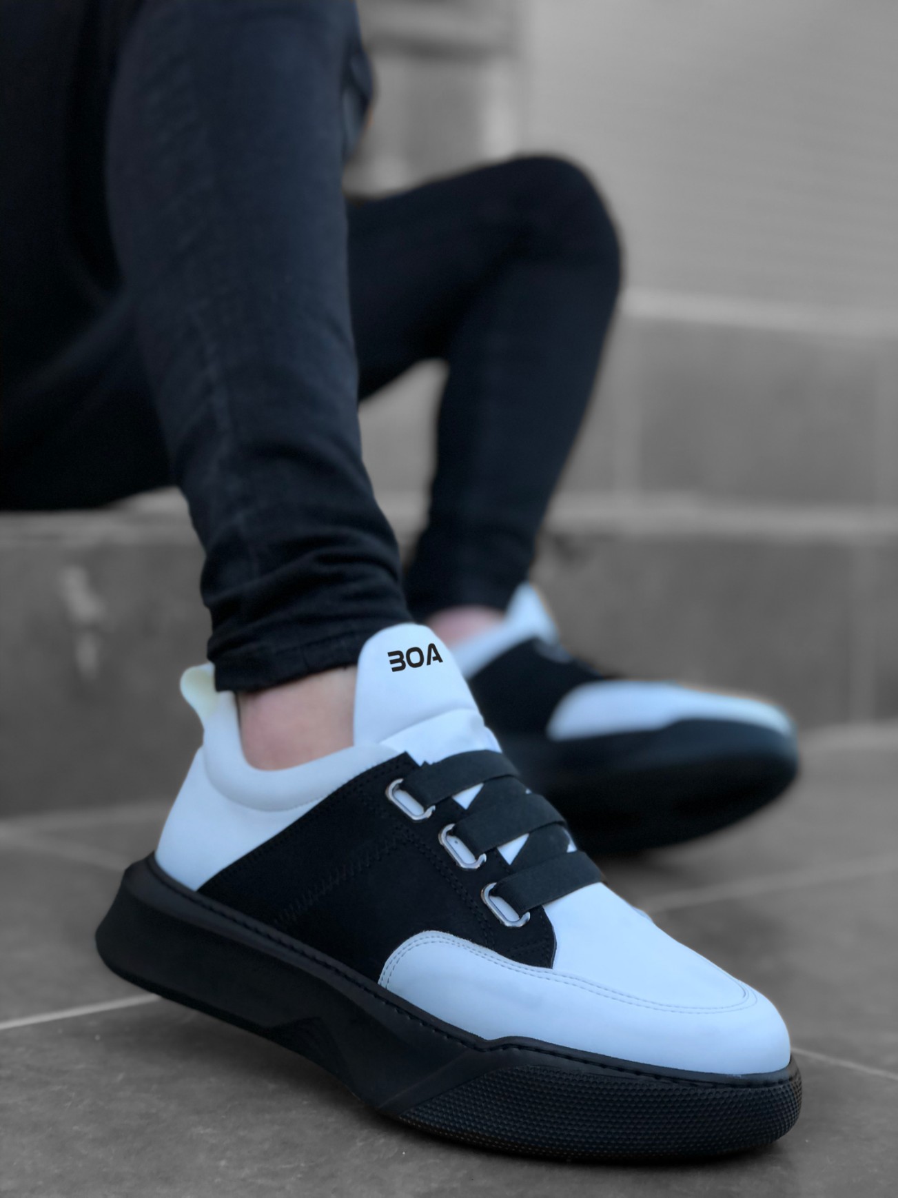 • BA0160 Bantlı Erkek Yüksek Taban Beyaz Siyah Spor Ayakkabı