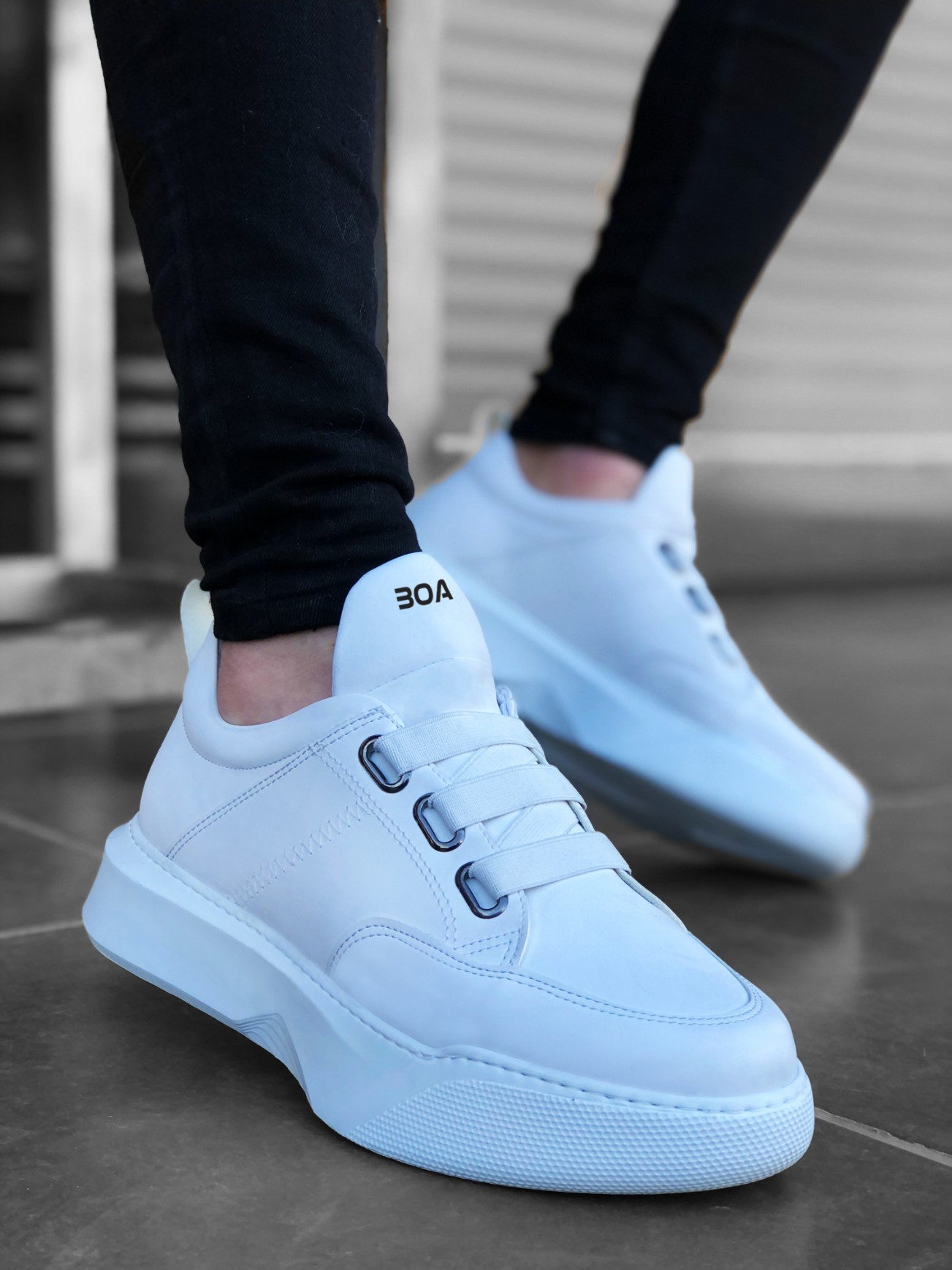 • BA0160 Bantlı Erkek Yüksek Taban Beyaz Spor Ayakkabı