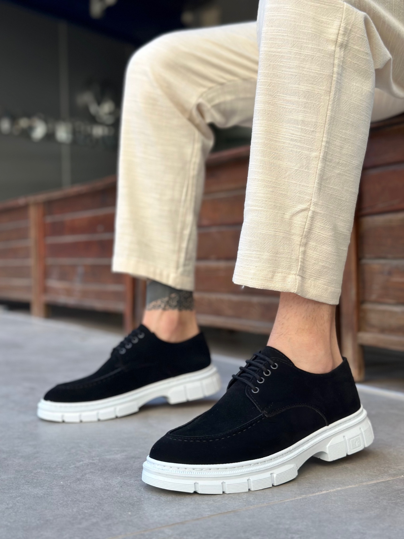 • BA0237 Bağcıklı Klasik Yüksek Taban Siyah Süet Casual Erkek Ayakkabı