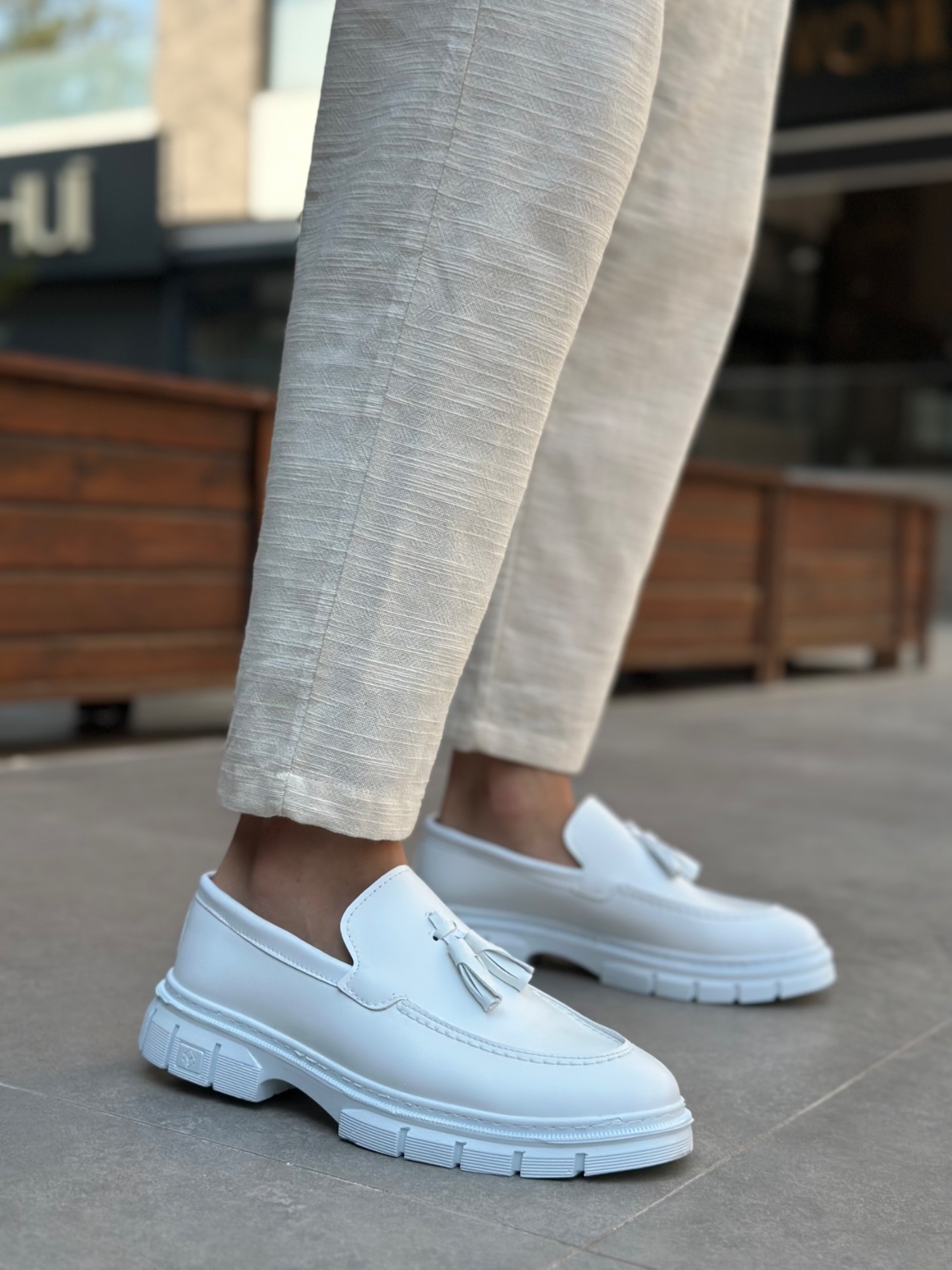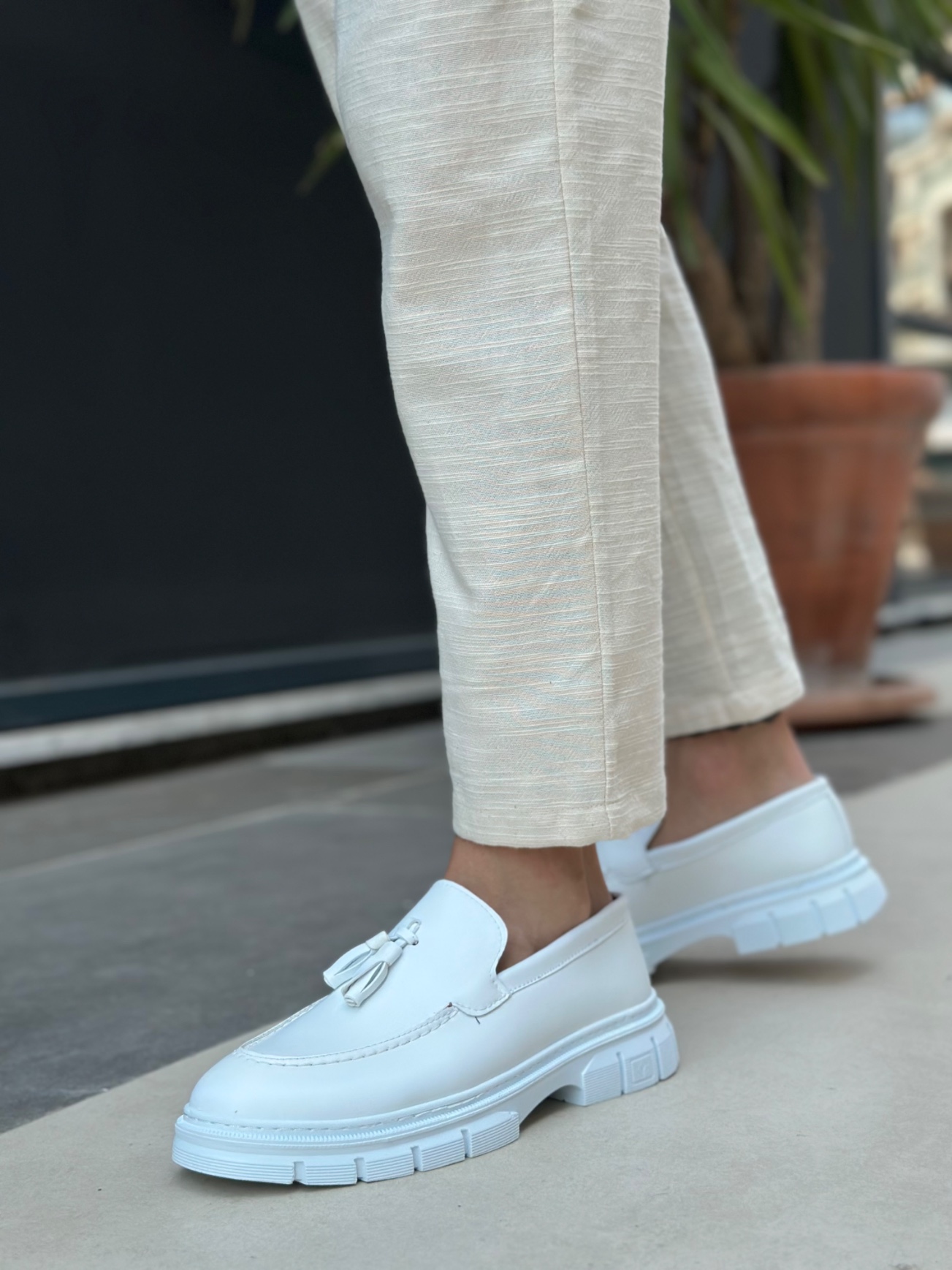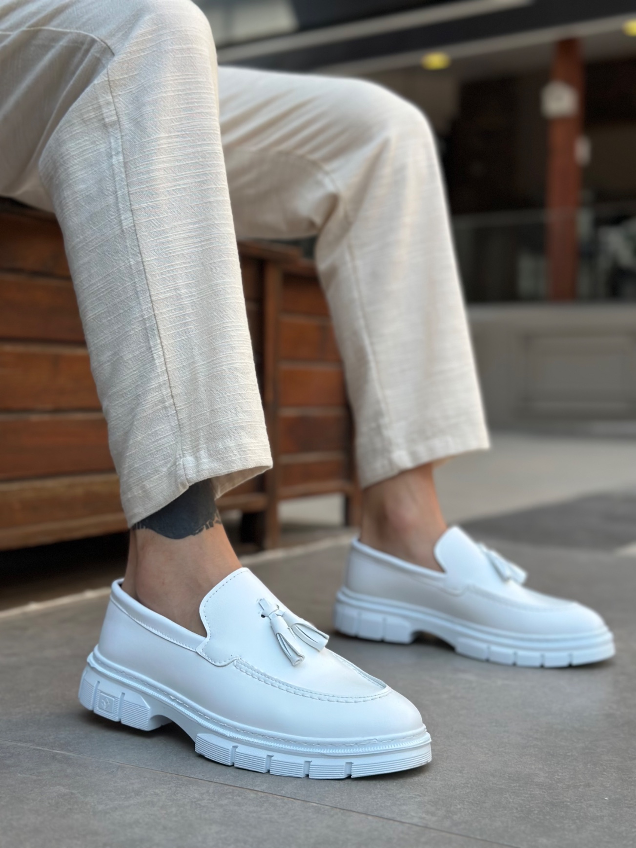 • BA0240 Yüksek Taban Klasik Parlak Püsküllü Beyaz Erkek Ayakkabı