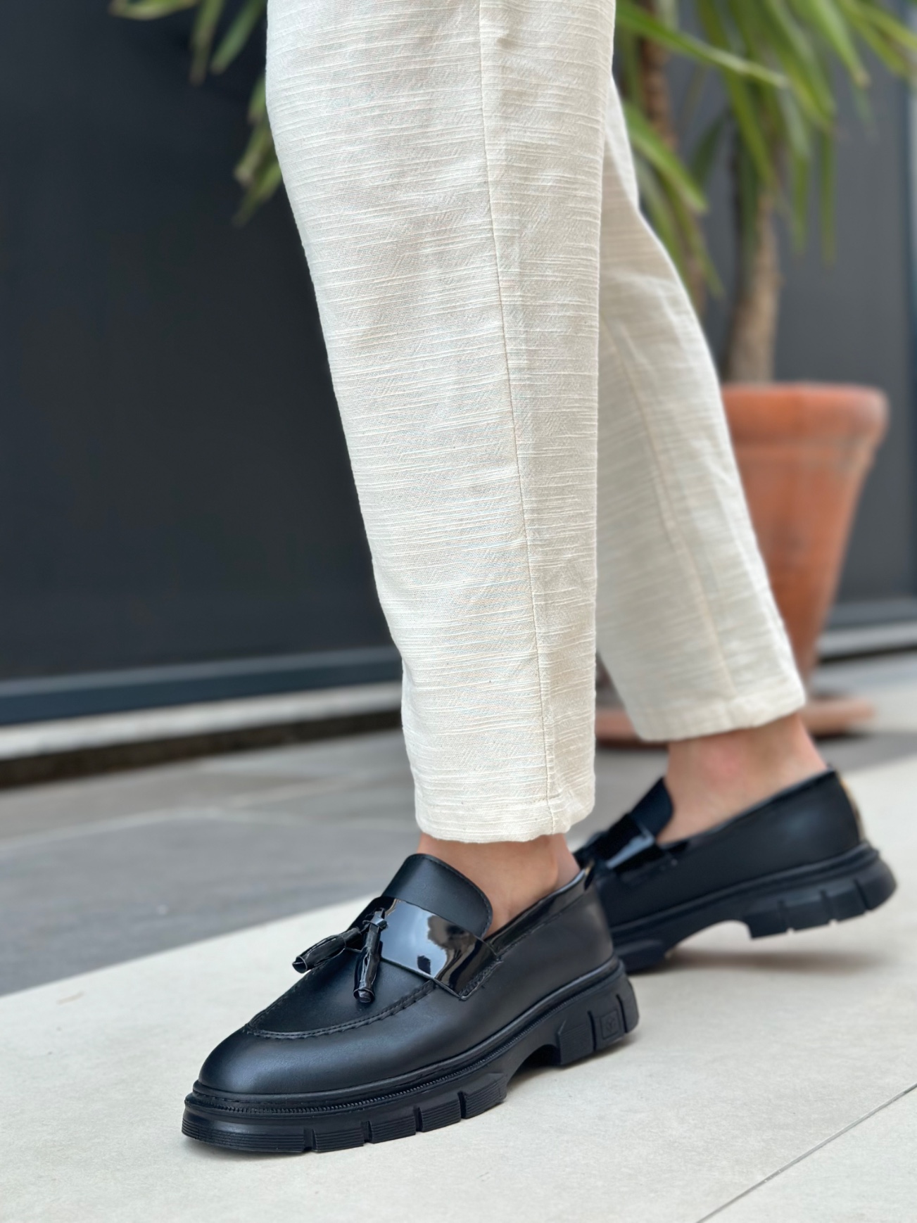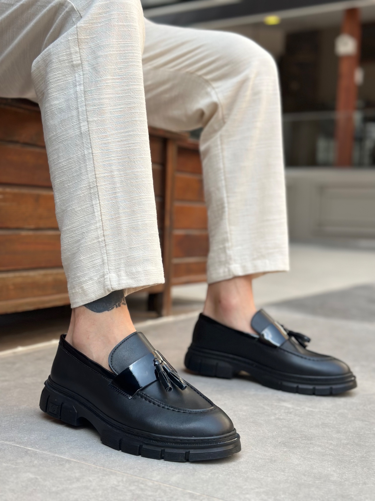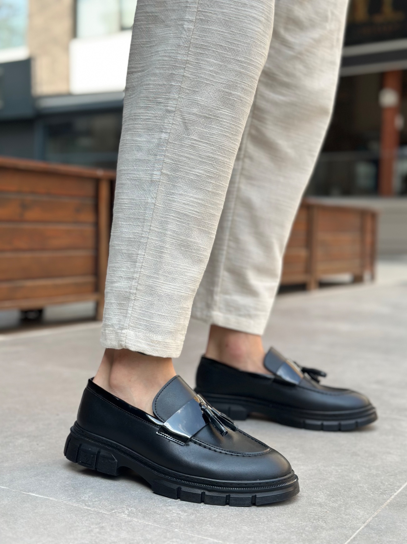 • BA0240 Yüksek Taban Klasik Parlak Püsküllü Siyah Taban Erkek Ayakkabı