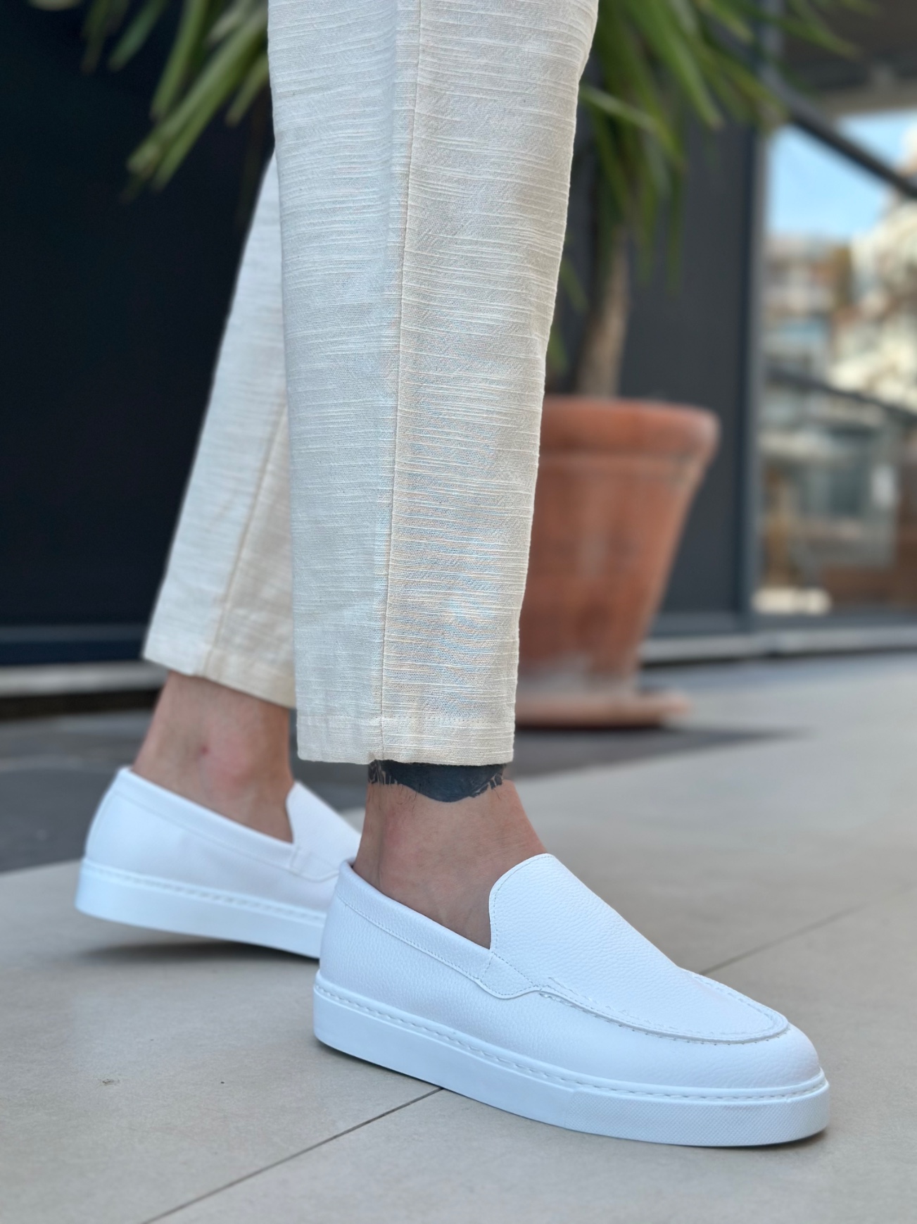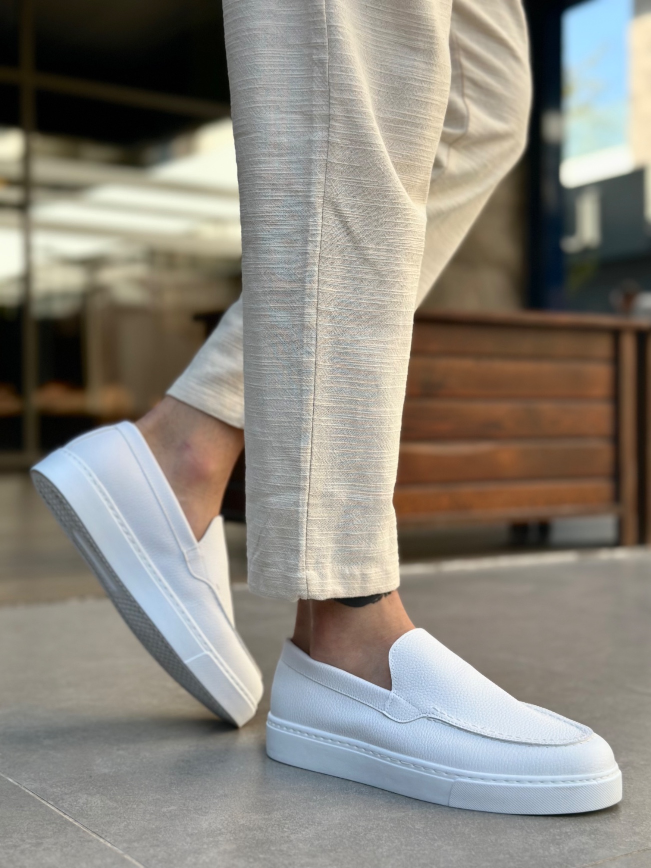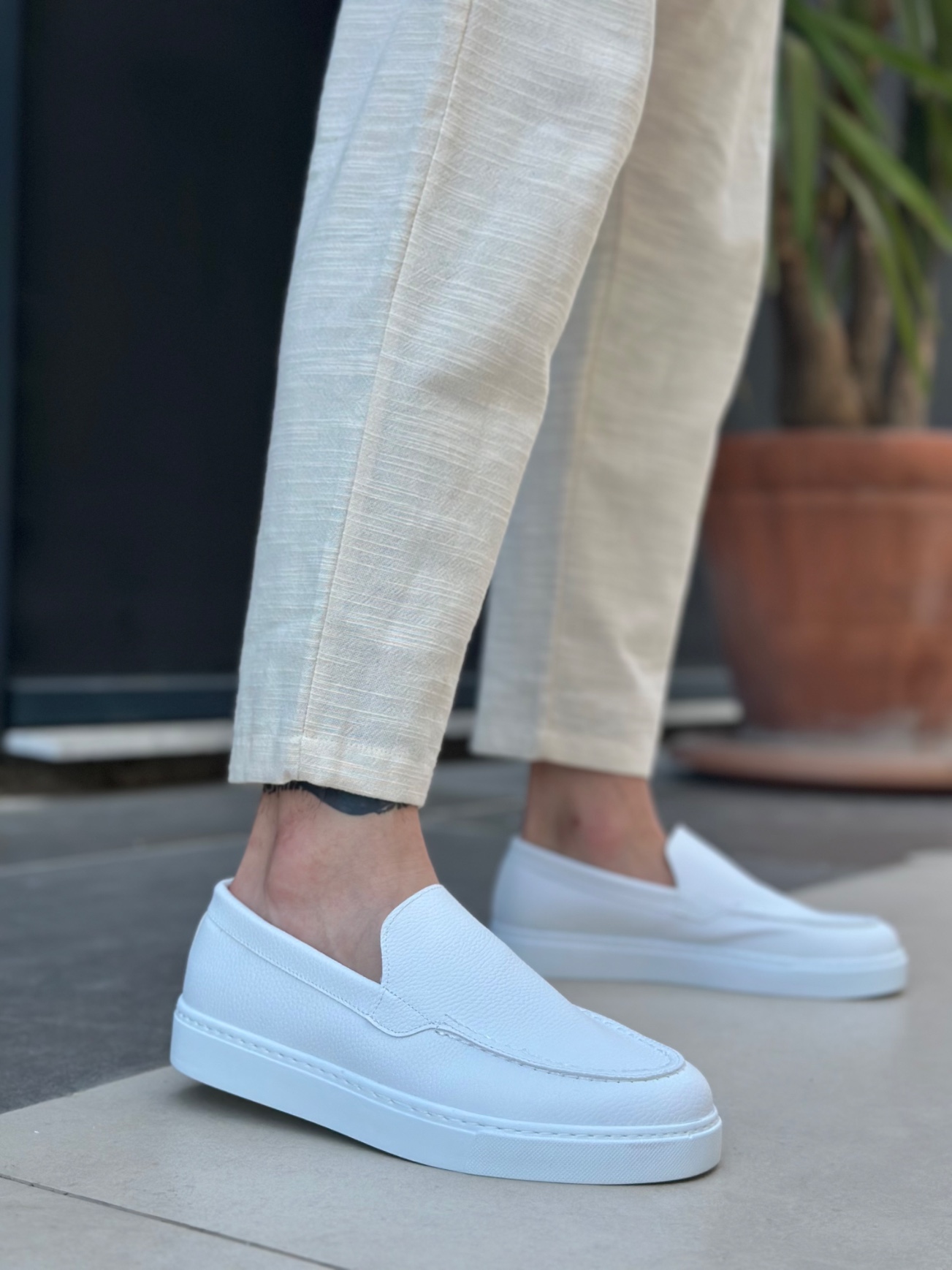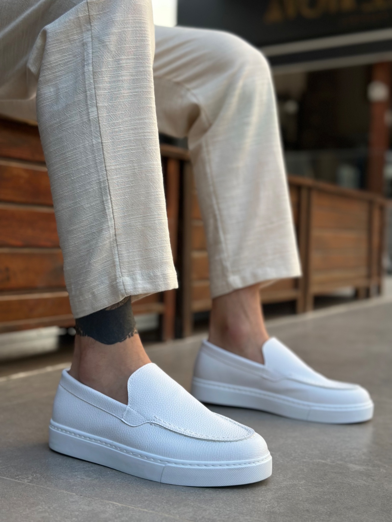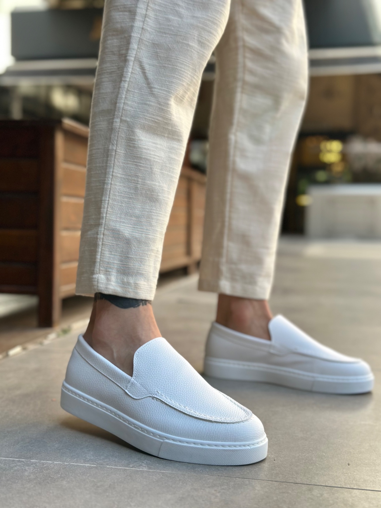 BA0241 Bağcıksız Yüksek Taban Beyaz Cilt Erkek Ayakkabı