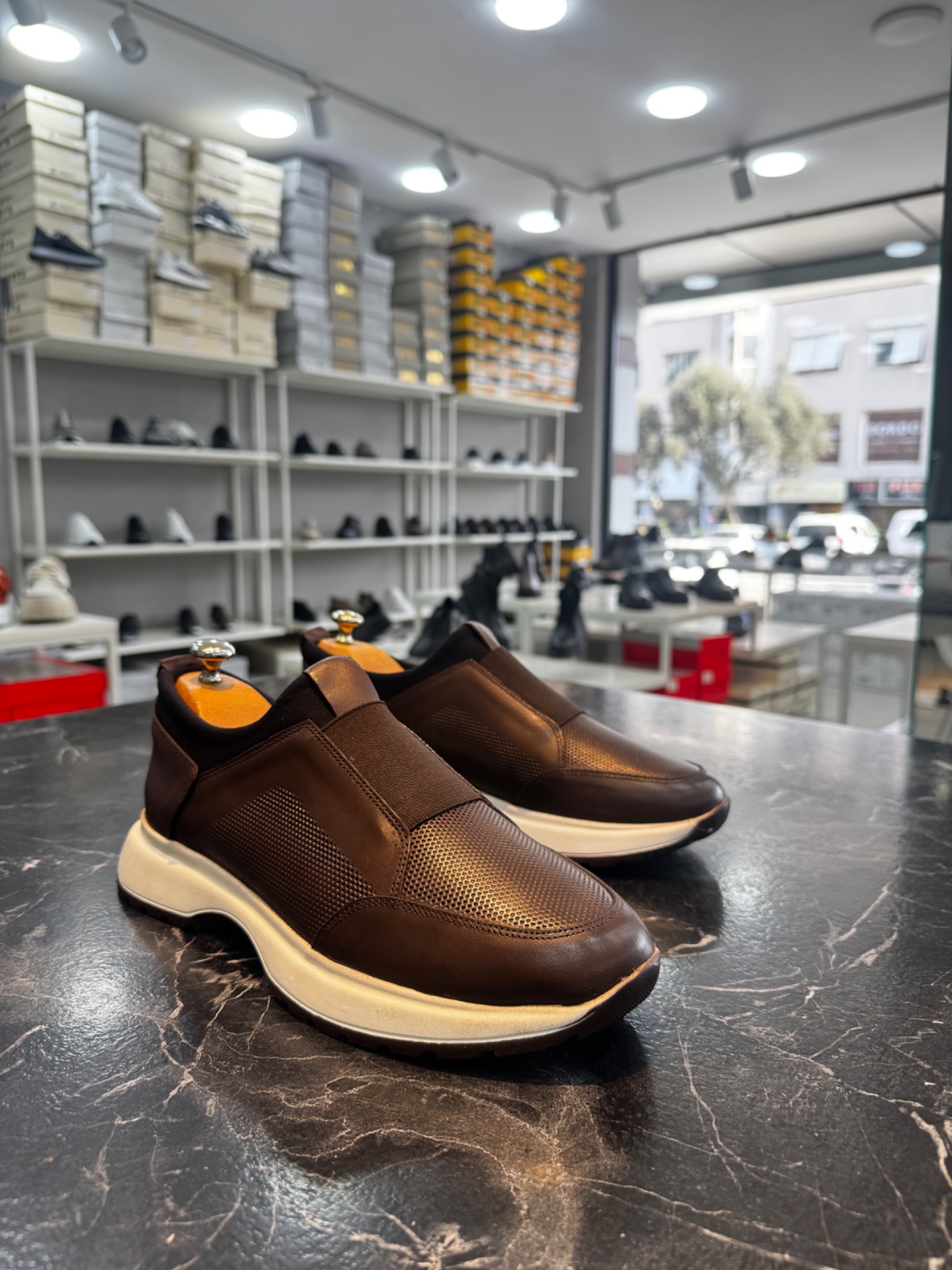 • BA0244 İçi Dışı Hakiki Deri Bantlı Rahat Taban Casual Kahverengi Erkek Ayakkabı