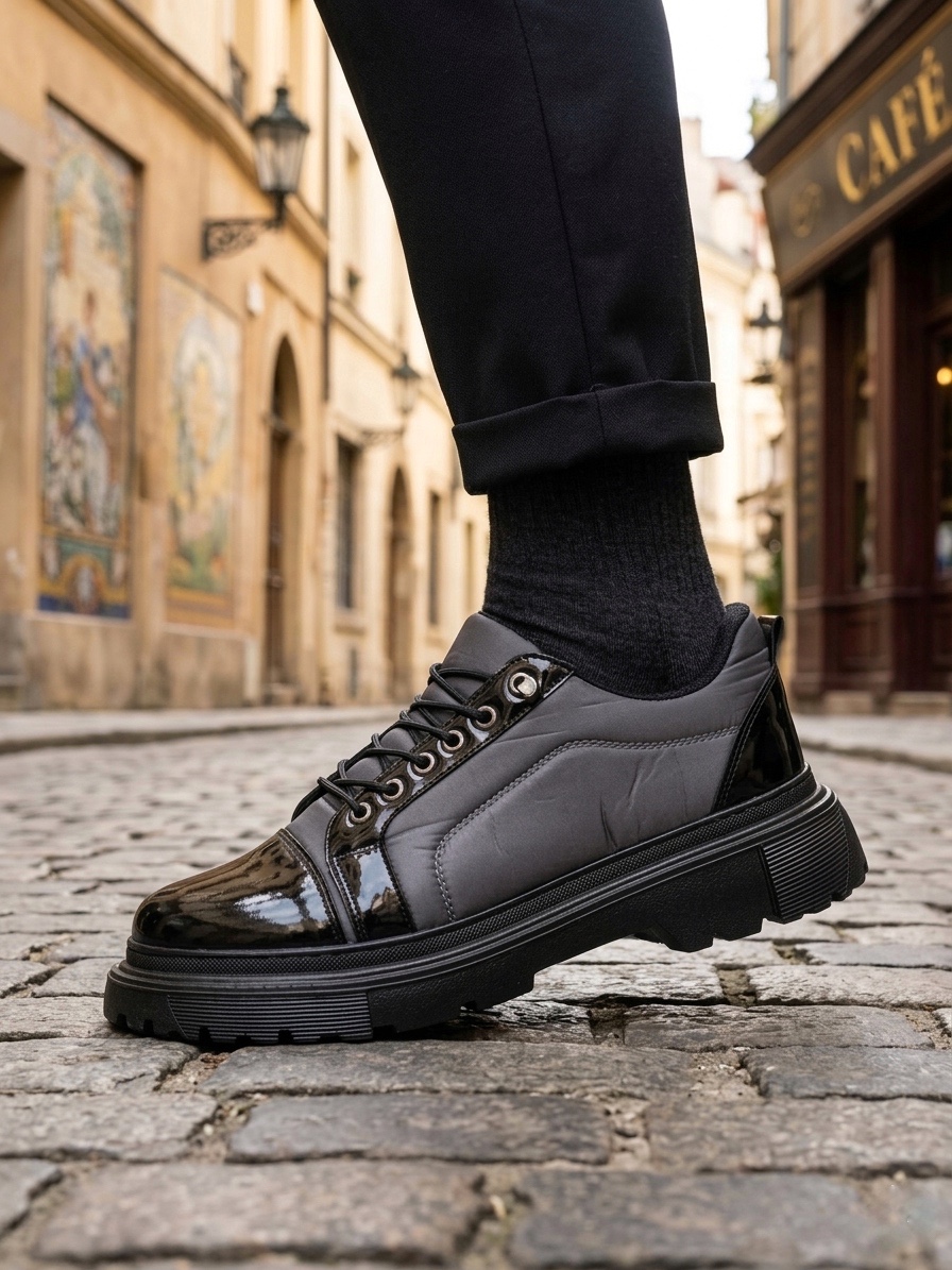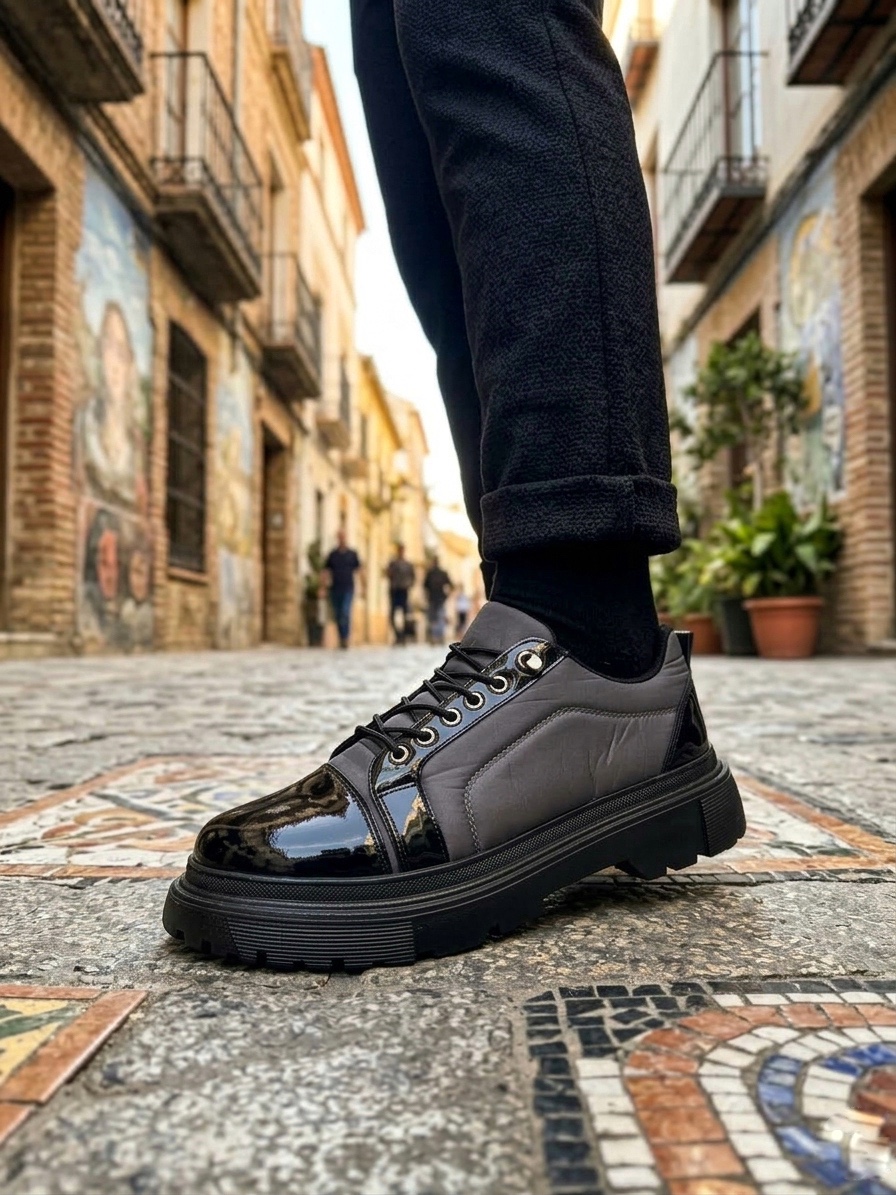 • BA0245 Gri Rugan Paraşüt Detaylı Akıllı Lastik Bağcık Yüksek Taban Günlük Erkek Ayakkabı