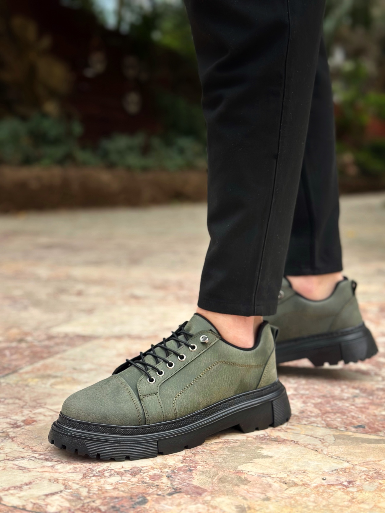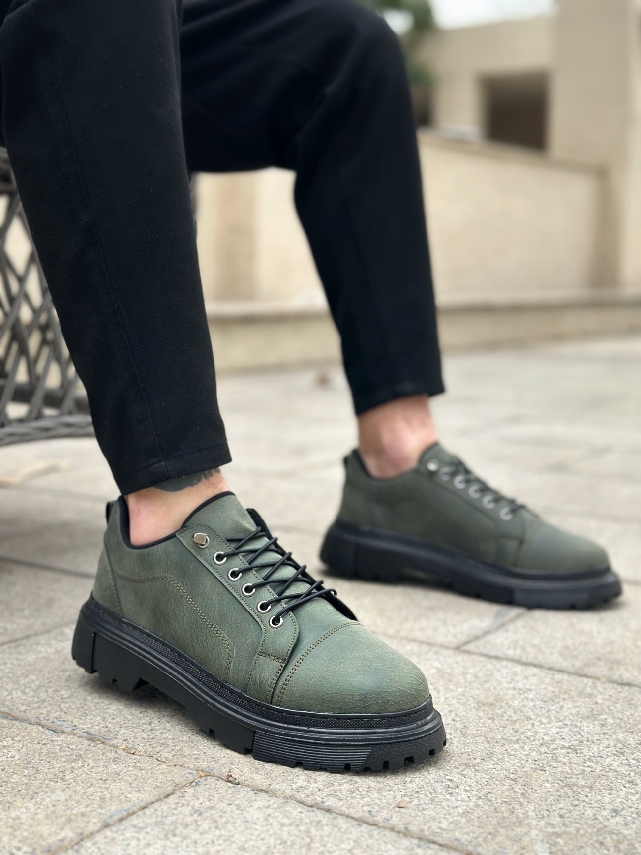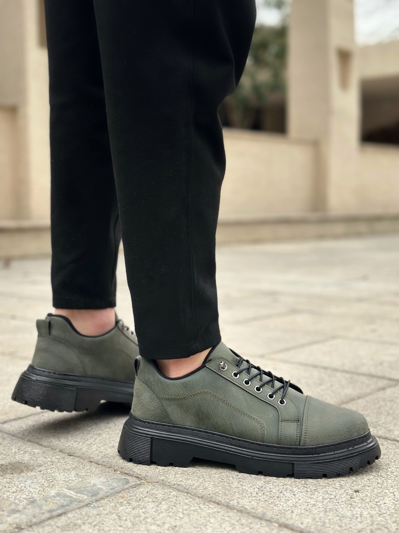 BA0245 Haki Akıllı Lastik Bağcık Yüksek Taban Günlük Erkek Ayakkabı
