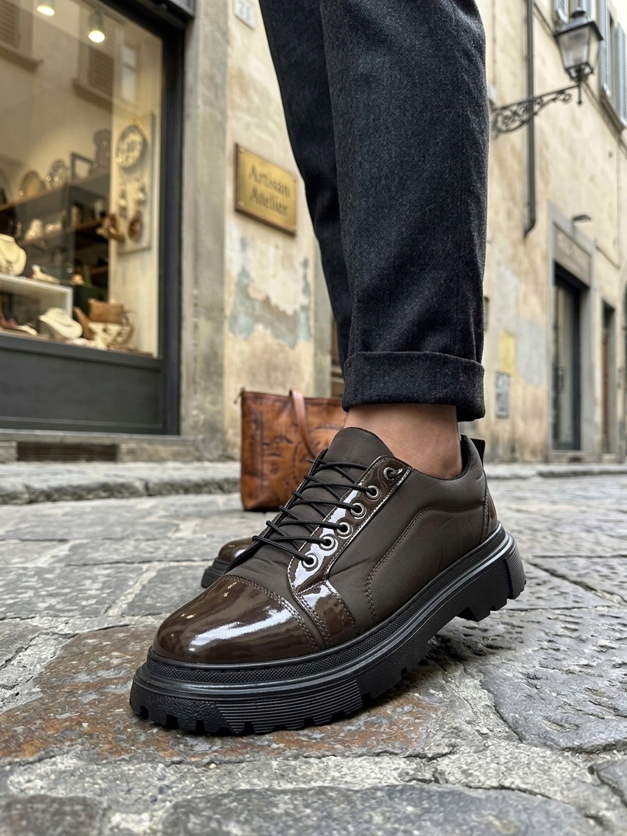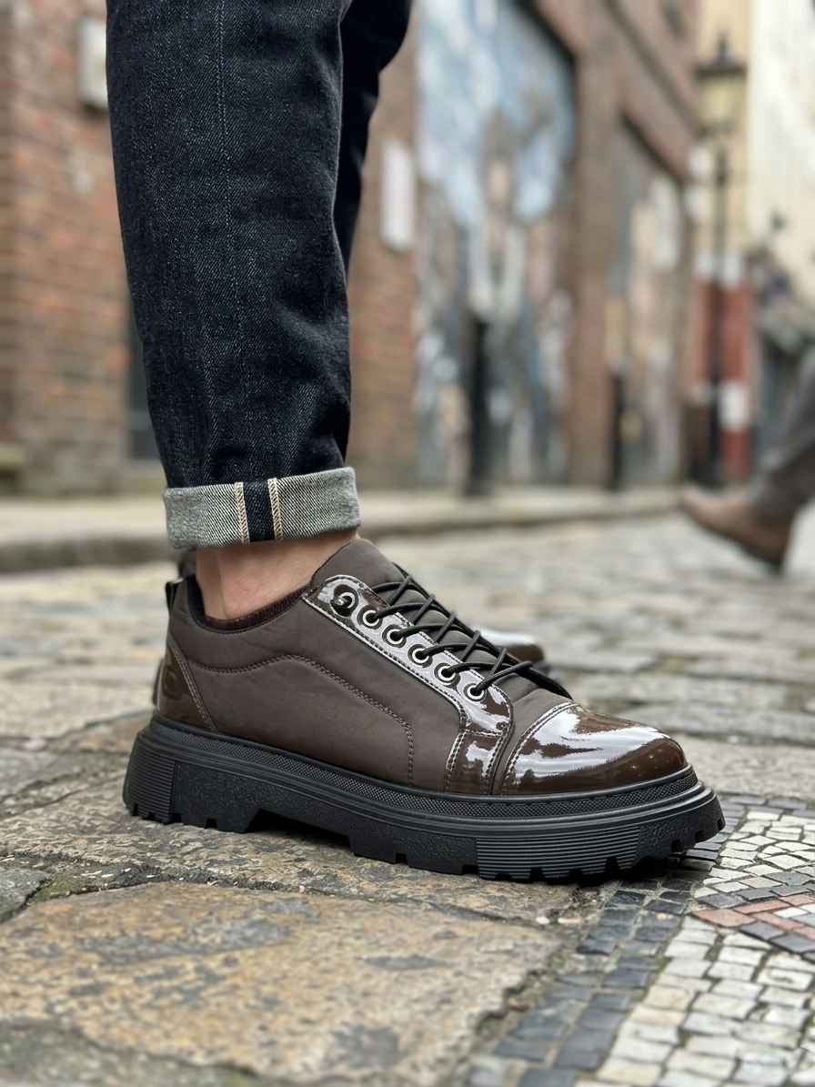 BA0245 Kahverengi Rugan Paraşüt Detaylı Akıllı Lastik Bağcık Yüksek Taban Günlük Erkek Ayakkabı