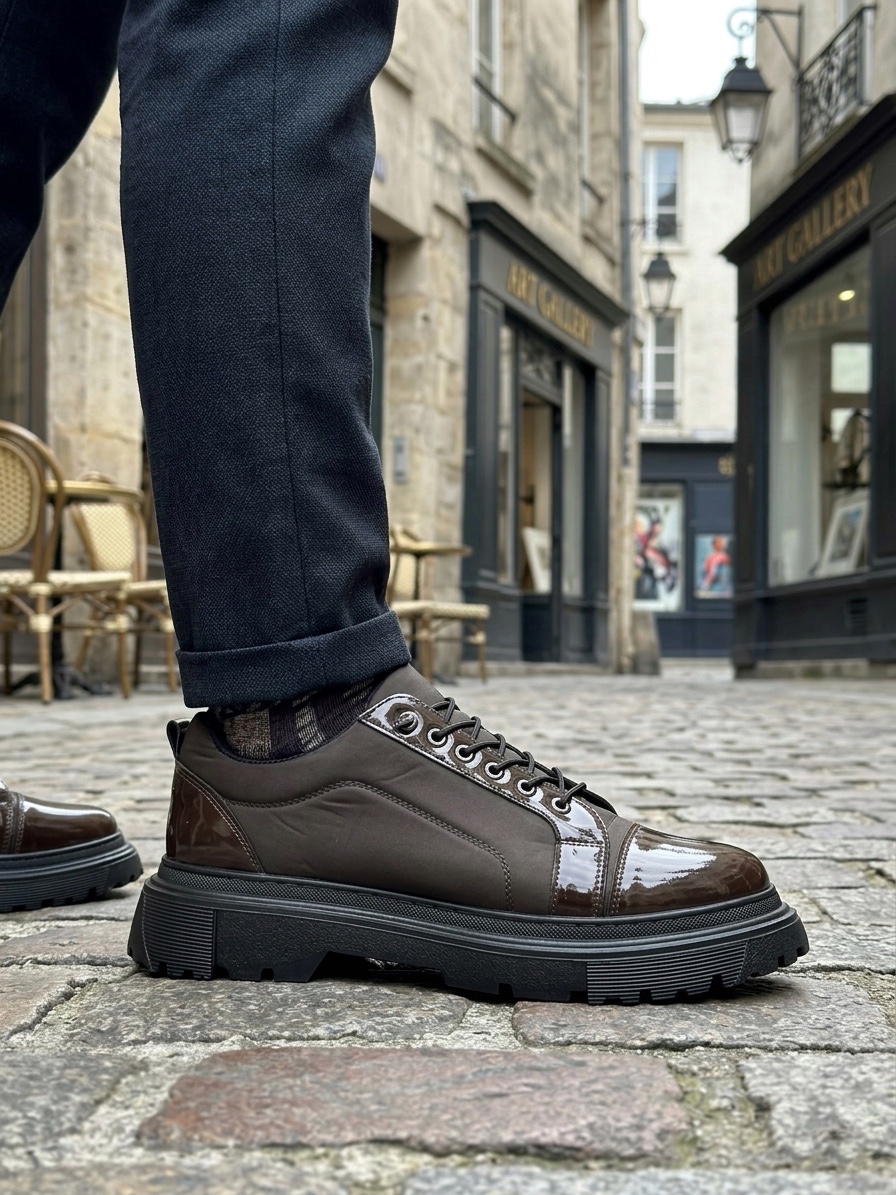 • BA0245 Kahverengi Rugan Paraşüt Detaylı Akıllı Lastik Bağcık Yüksek Taban Günlük Erkek Ayakkabı