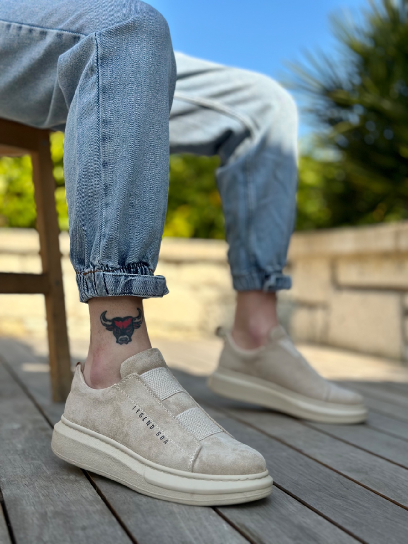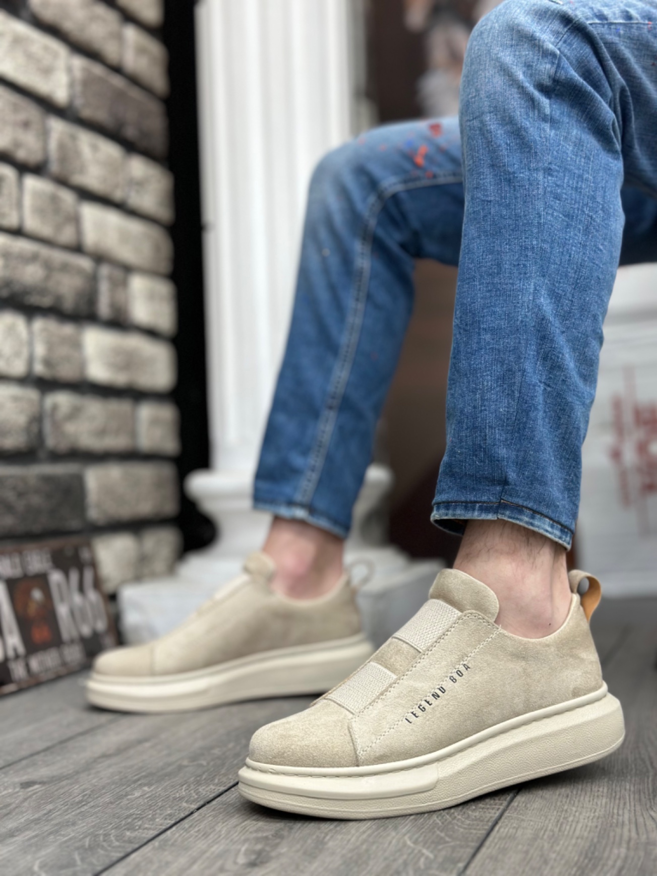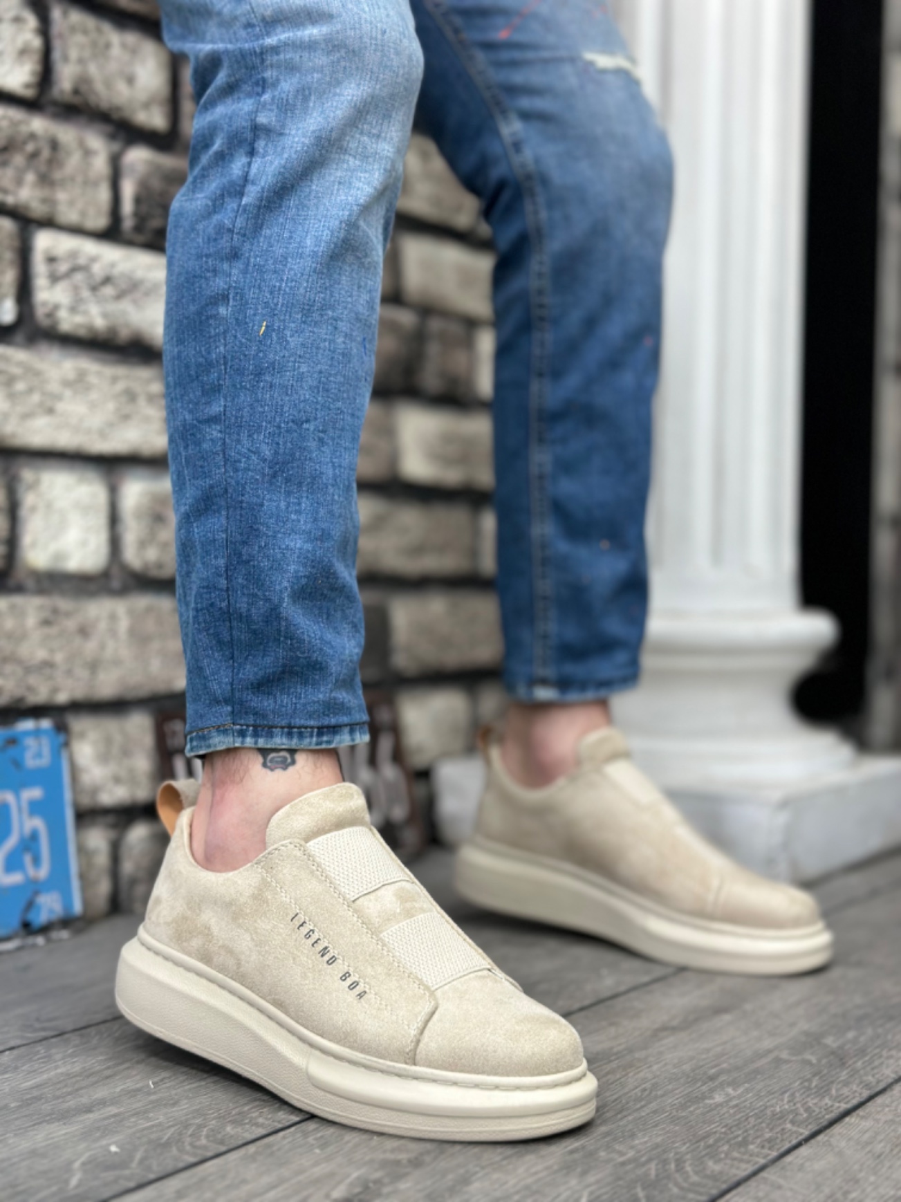 BA0307 BOA Kalın Süet Yüksek Taban Çift Bant Bej Erkek Ayakkabı