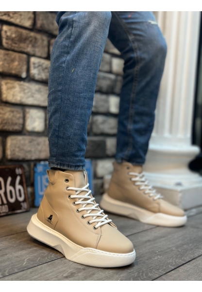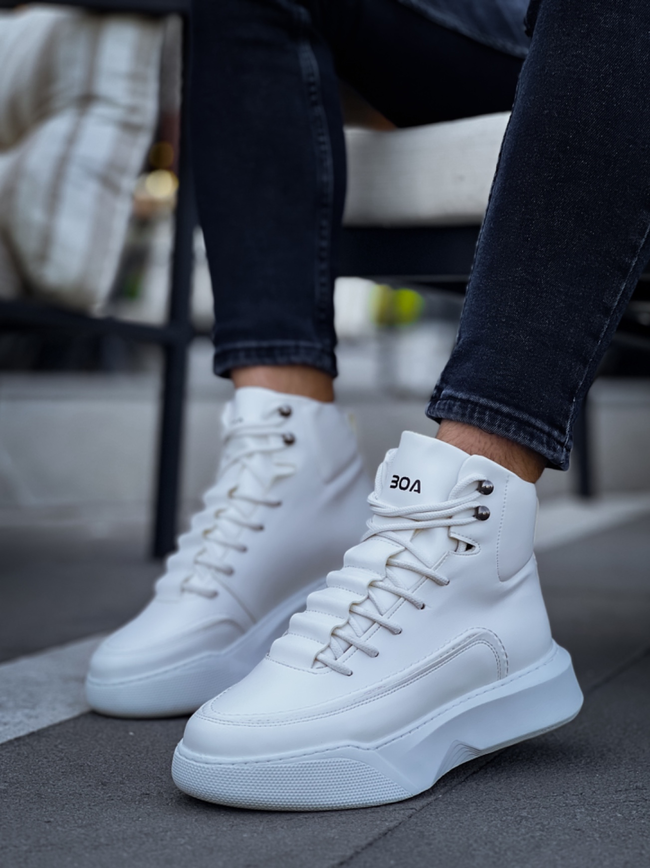 • BA0321 Gizli Bağcıklı Erkek Yüksek Taban Beyaz Spor Bot