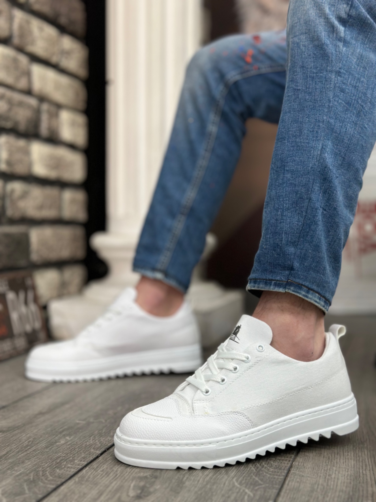 BA0328 BOA Kalın Yüksek Taban Smile Desenli Beyaz Spor Erkek Ayakkabı