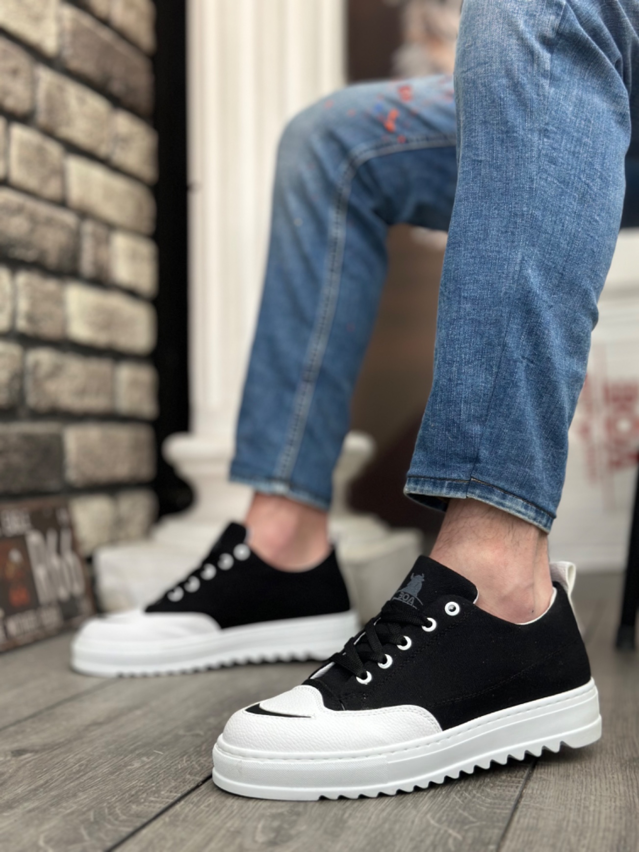 • BA0328 BOA Kalın Yüksek Taban Smile Desenli Siyah Beyaz Spor Erkek Ayakkabı