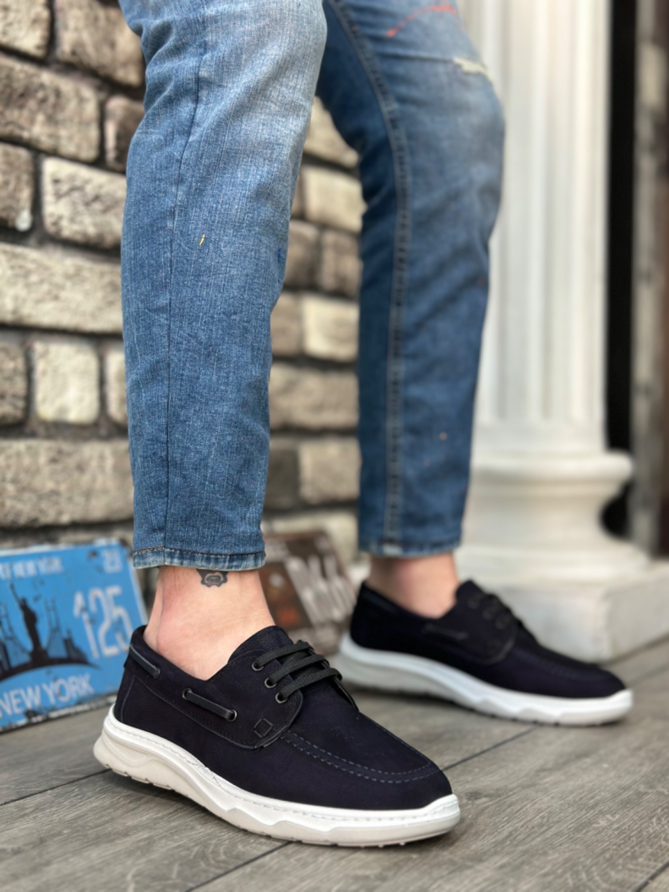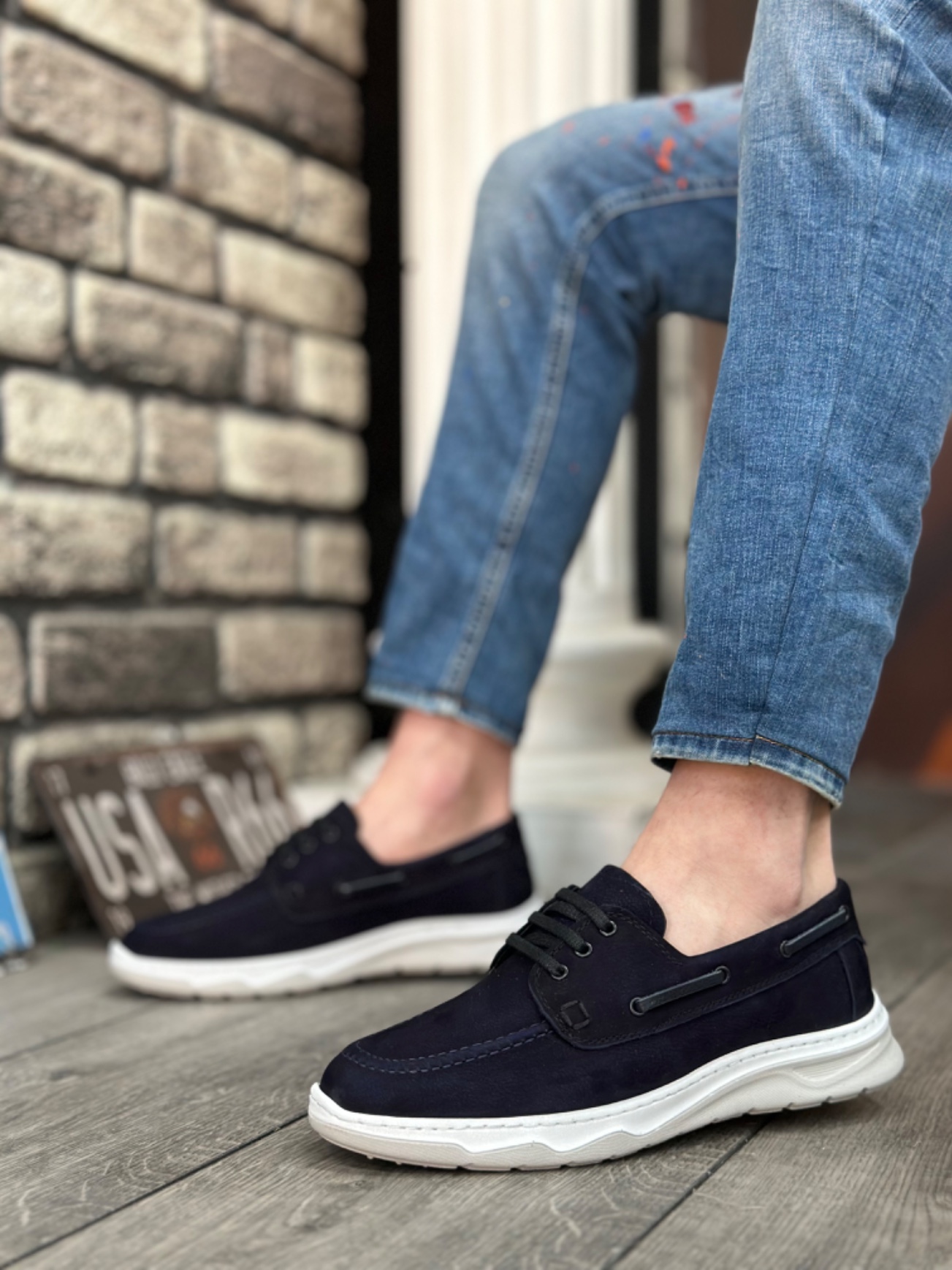 BA0337 İçi Dışı Hakiki Nubuk Deri Classic Lacivert Günlük Erkek Ayakkabı