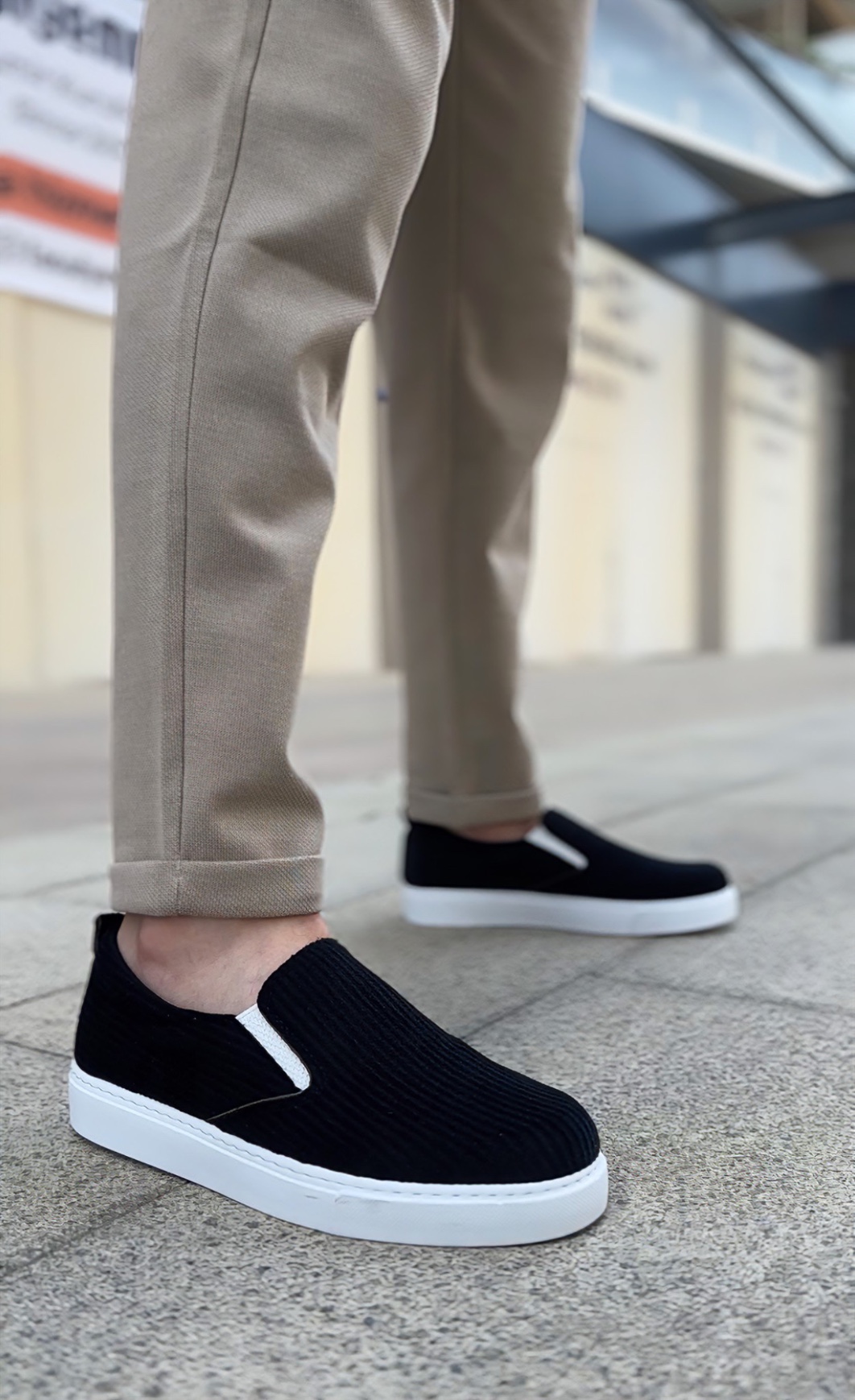• BA0339 Bağcıksız Kadife Siyah Beyaz Taban Günlük Erkek Ayakkabı