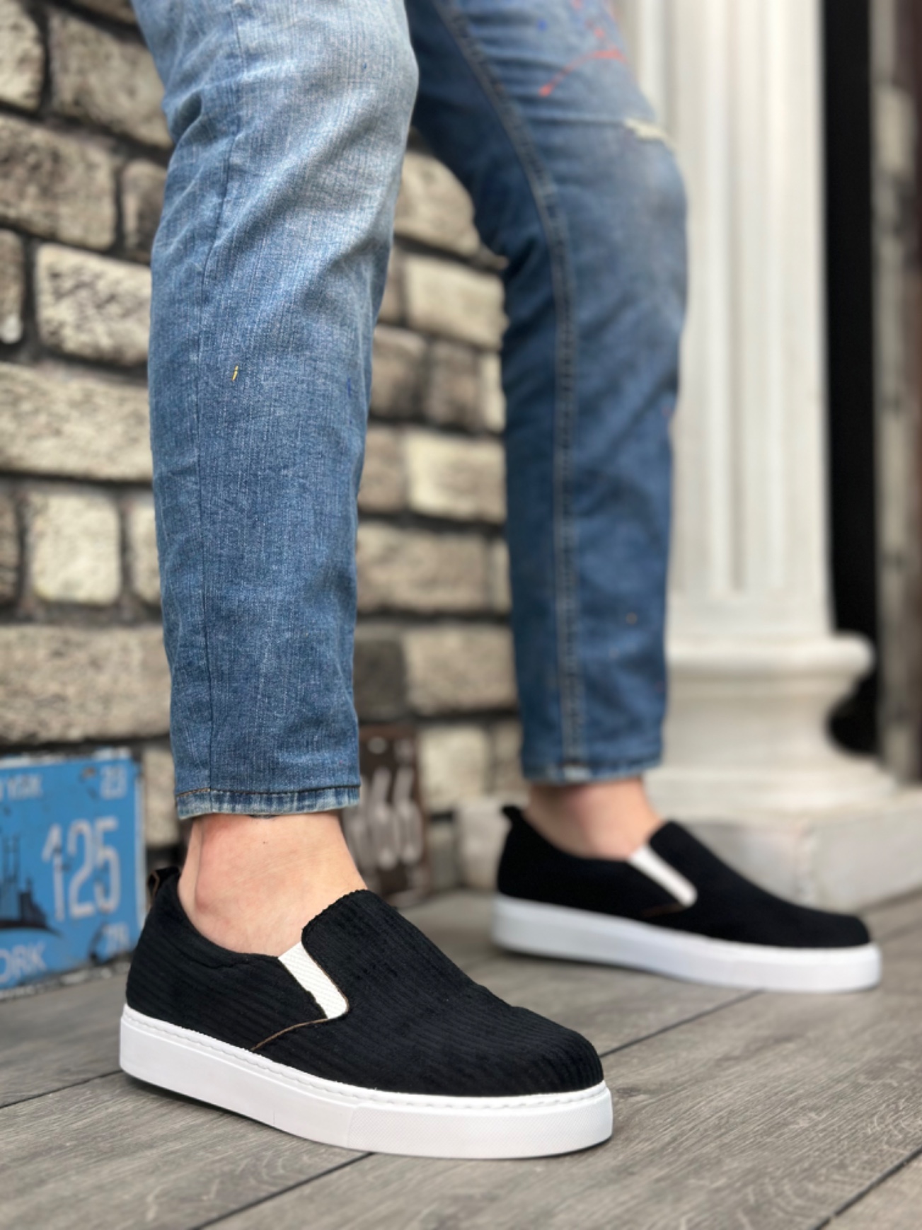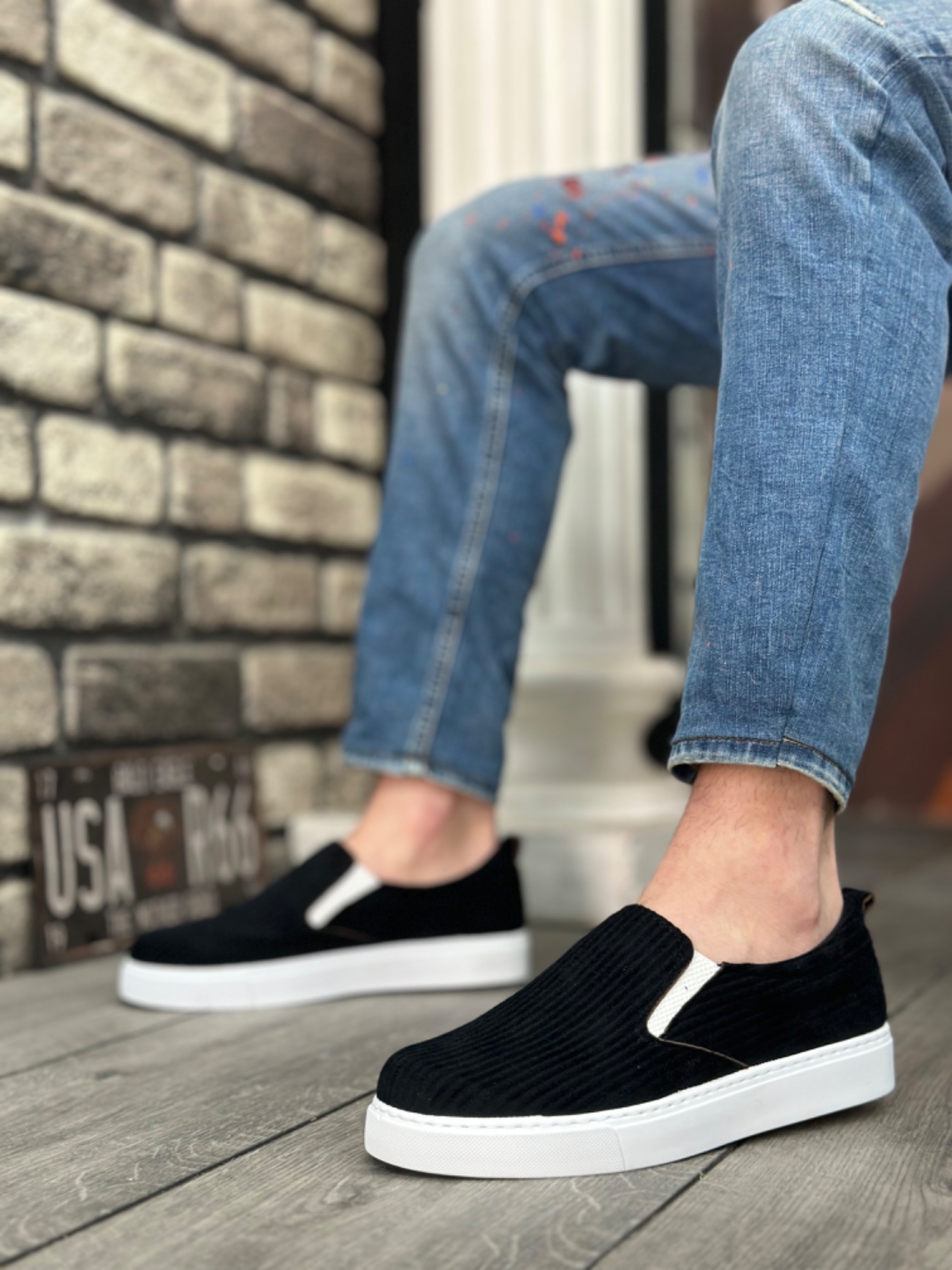 BA0339 Bağcıksız Kadife Siyah Beyaz Taban Günlük Erkek Ayakkabı