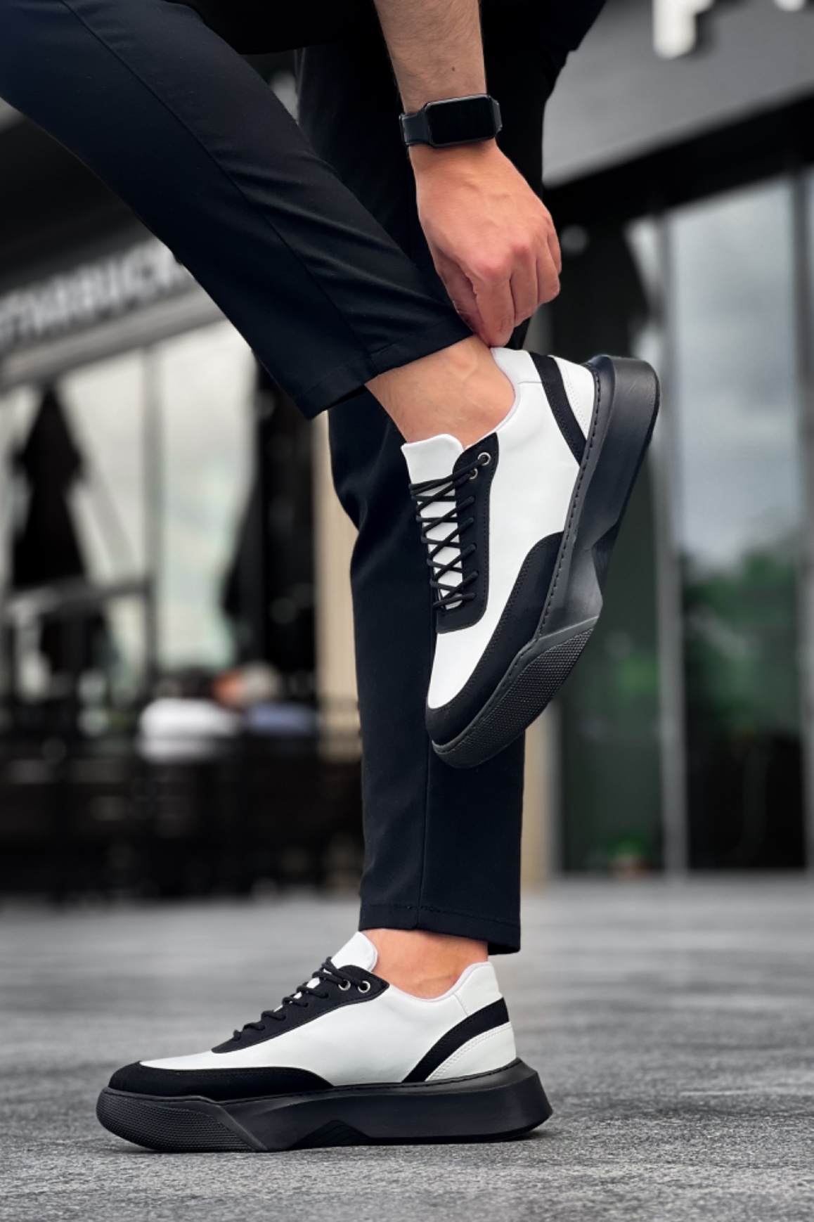 BA0354 Günlük Bağcıklı Erkek Yüksek Beyaz Psr.alı Siyah Taban Spor Ayakkabı