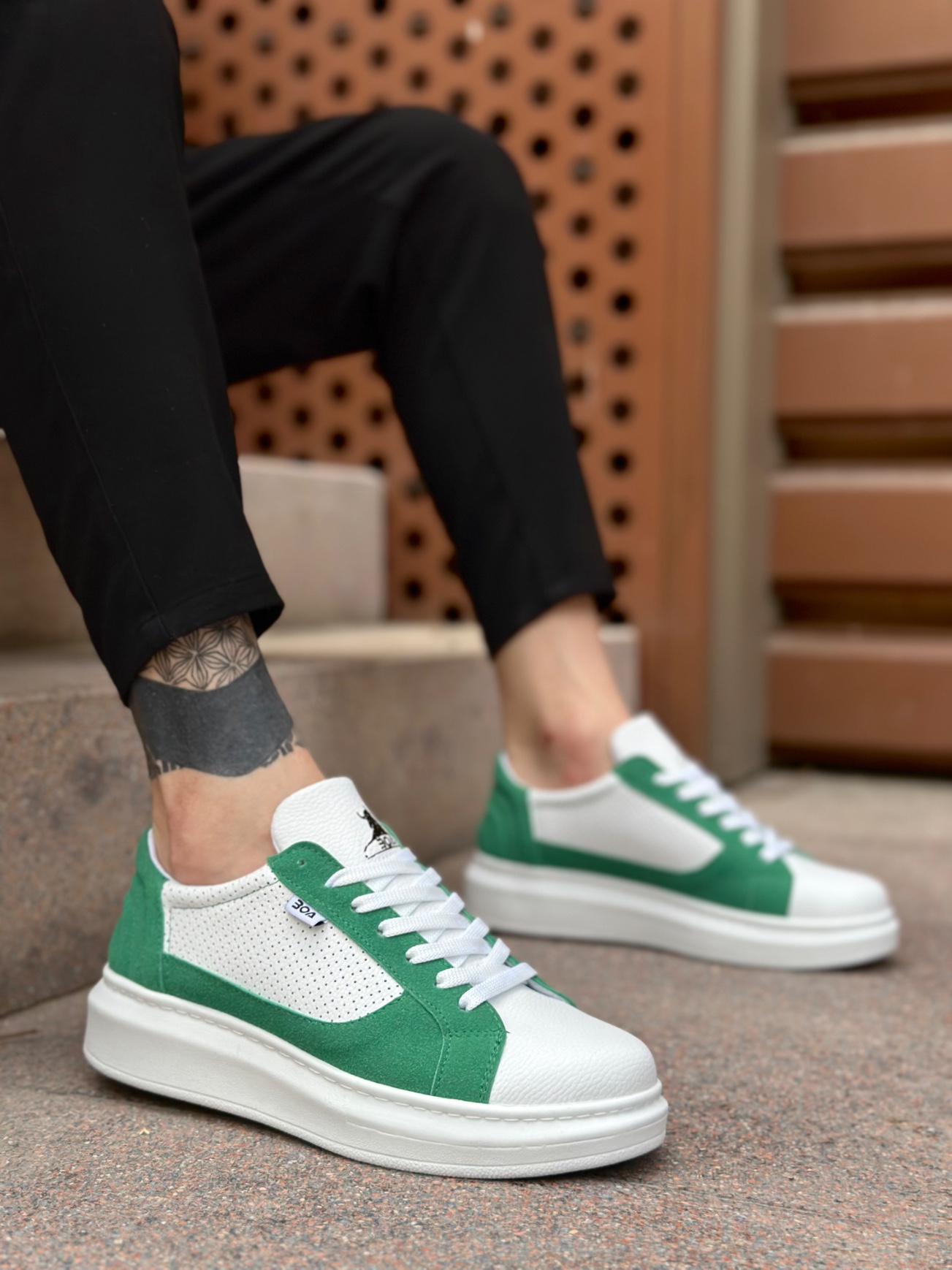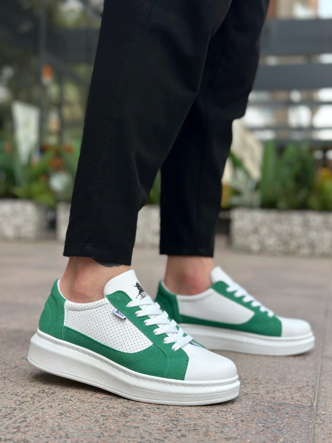 • BA0423 BOA Kalın Yüksek Taban Beyaz Yeşil Bağcıklı Spor Erkek Ayakkabı