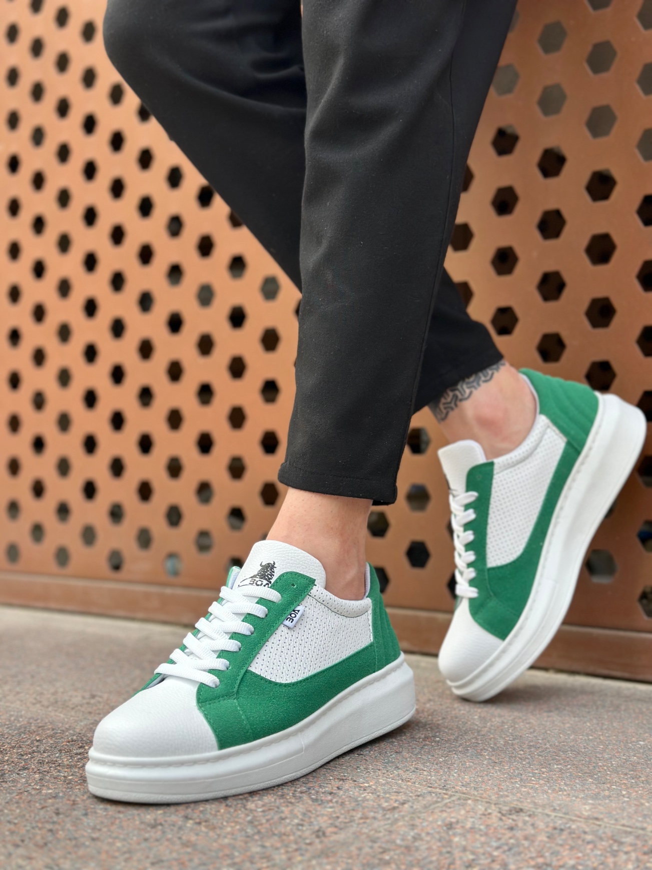 Marka BOA BA0423 BOA Kalın Yüksek Taban Beyaz Yeşil Bağcıklı Spor Erkek Ayakkabı