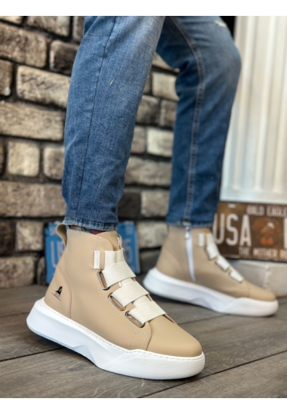 BA0444 Bağcıksız Rahat Yüksek Taban Beyaz Erkek Spor Yarım Bilek Bot