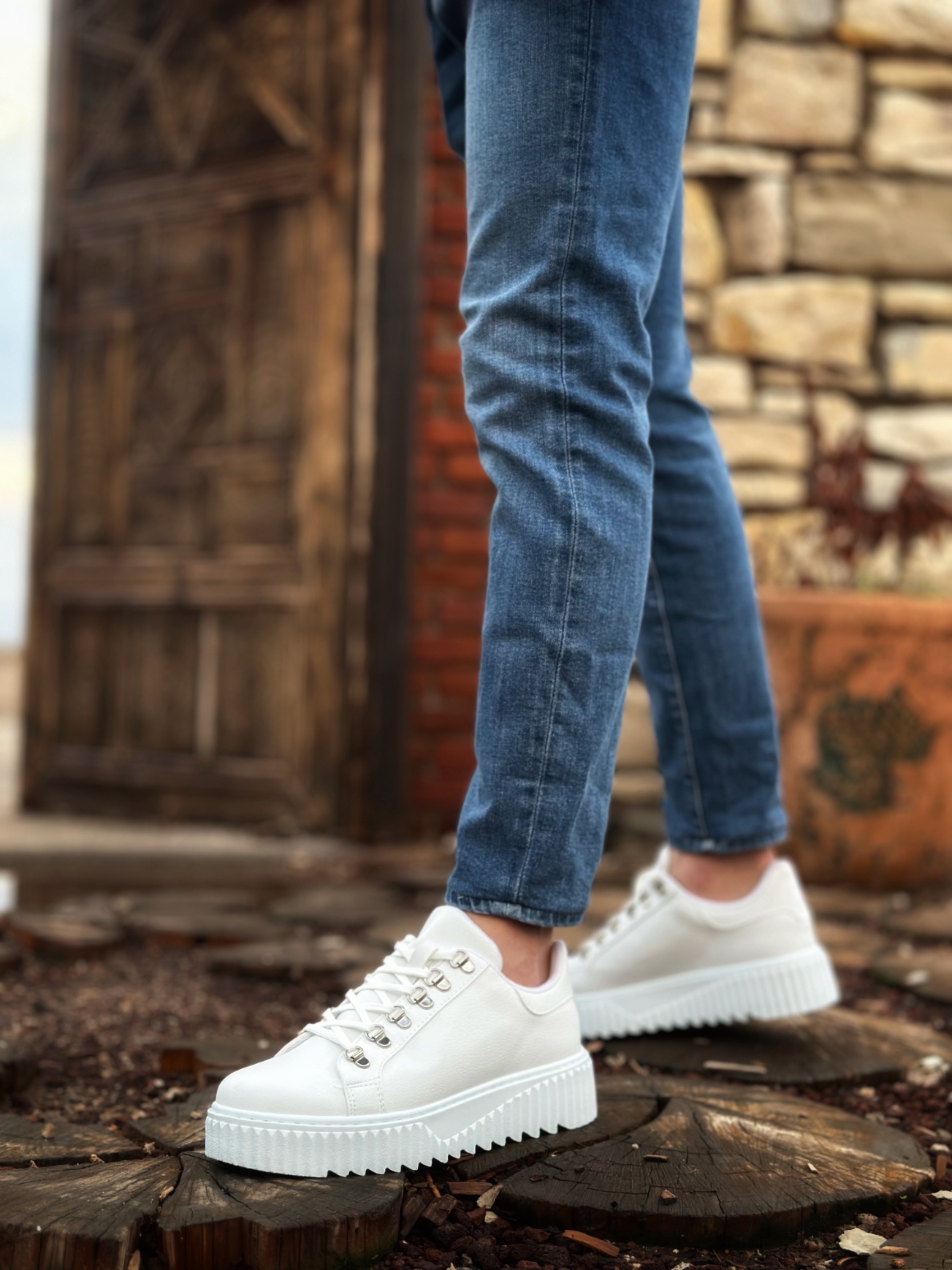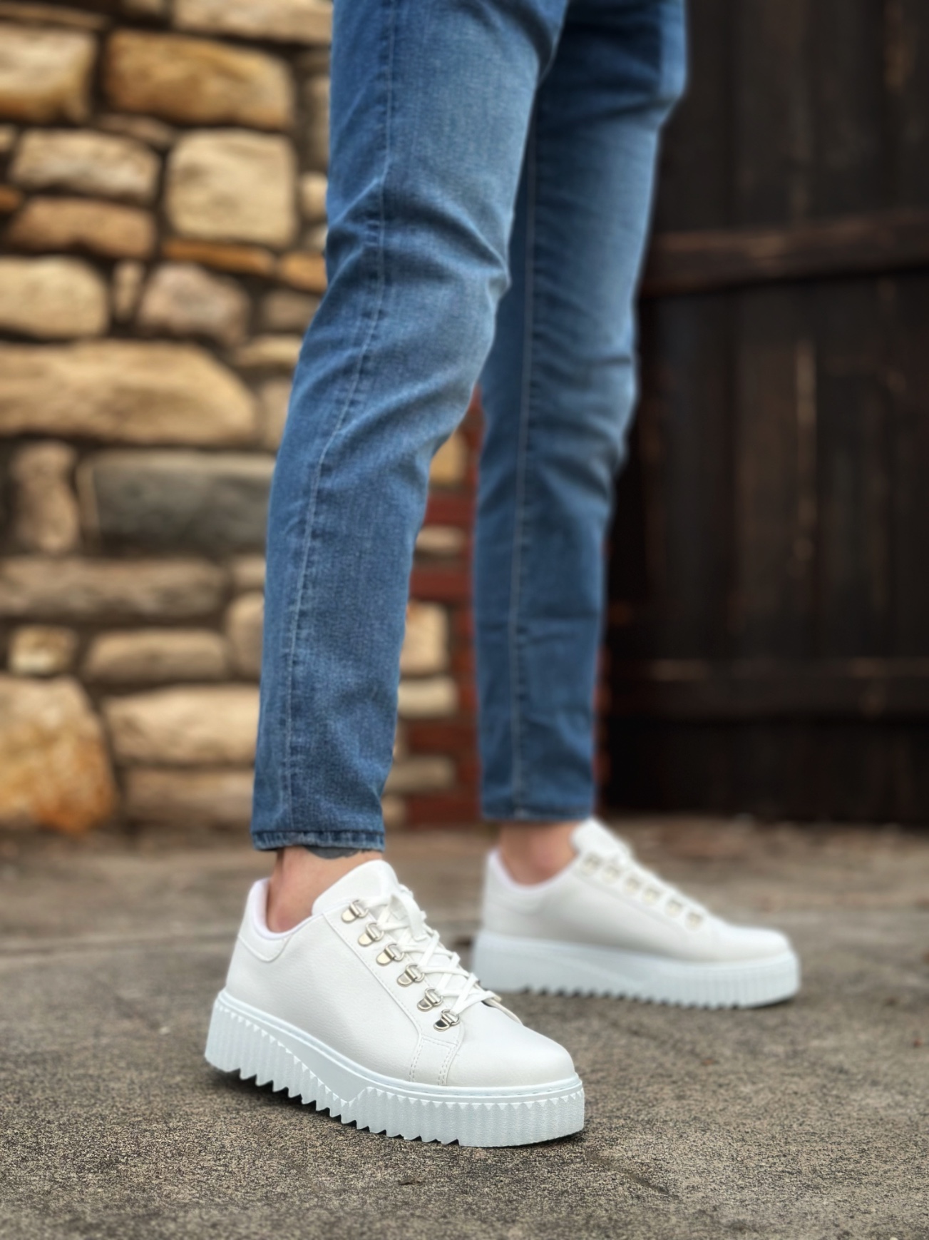 BA0505 Çengel Bağcıklı Beyaz Renk Yüksek Tabanlı Günlük Ayakkabı