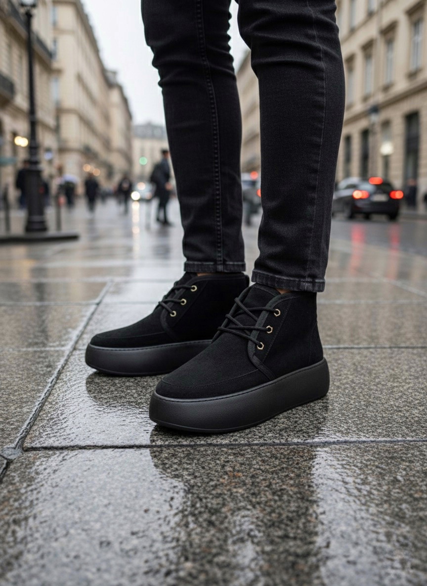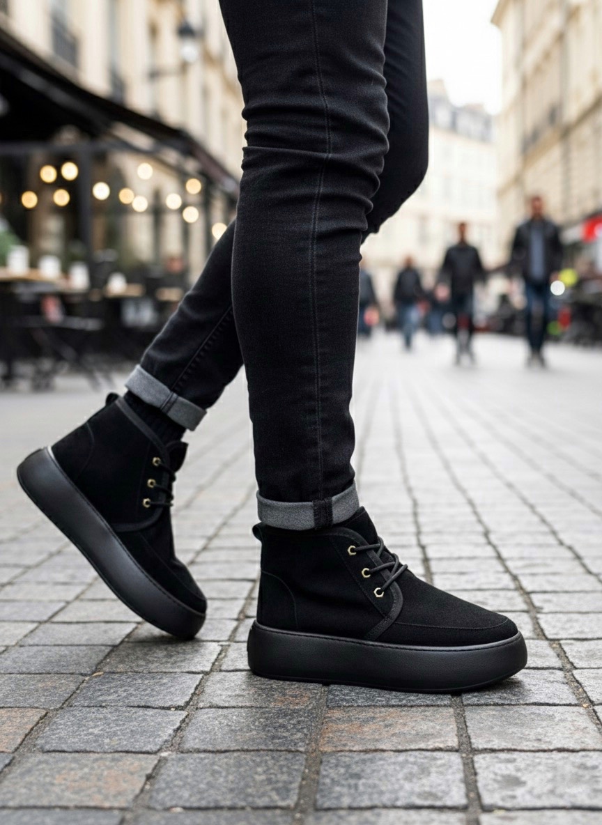 BA0550 İçi Kürklü Bağcıklı Siyah Taban Erkek Tarz Spor Bot