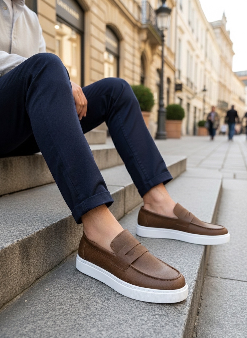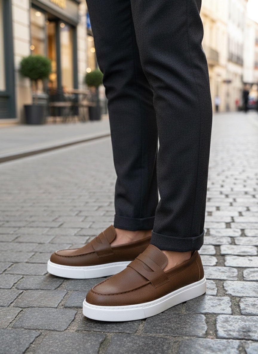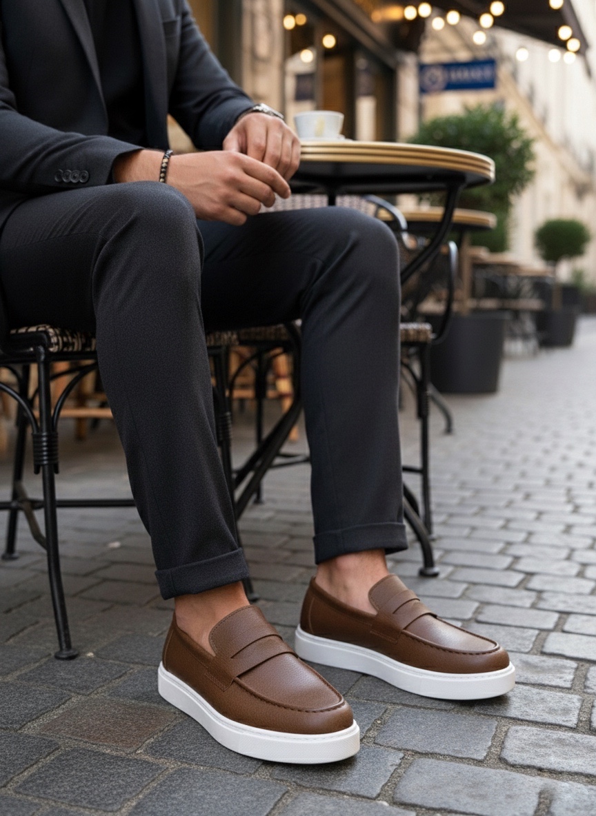 BA0580 Bağcıksız Kuşaklı Yüksek Taban Taba Cilt Erkek Ayakkabı
