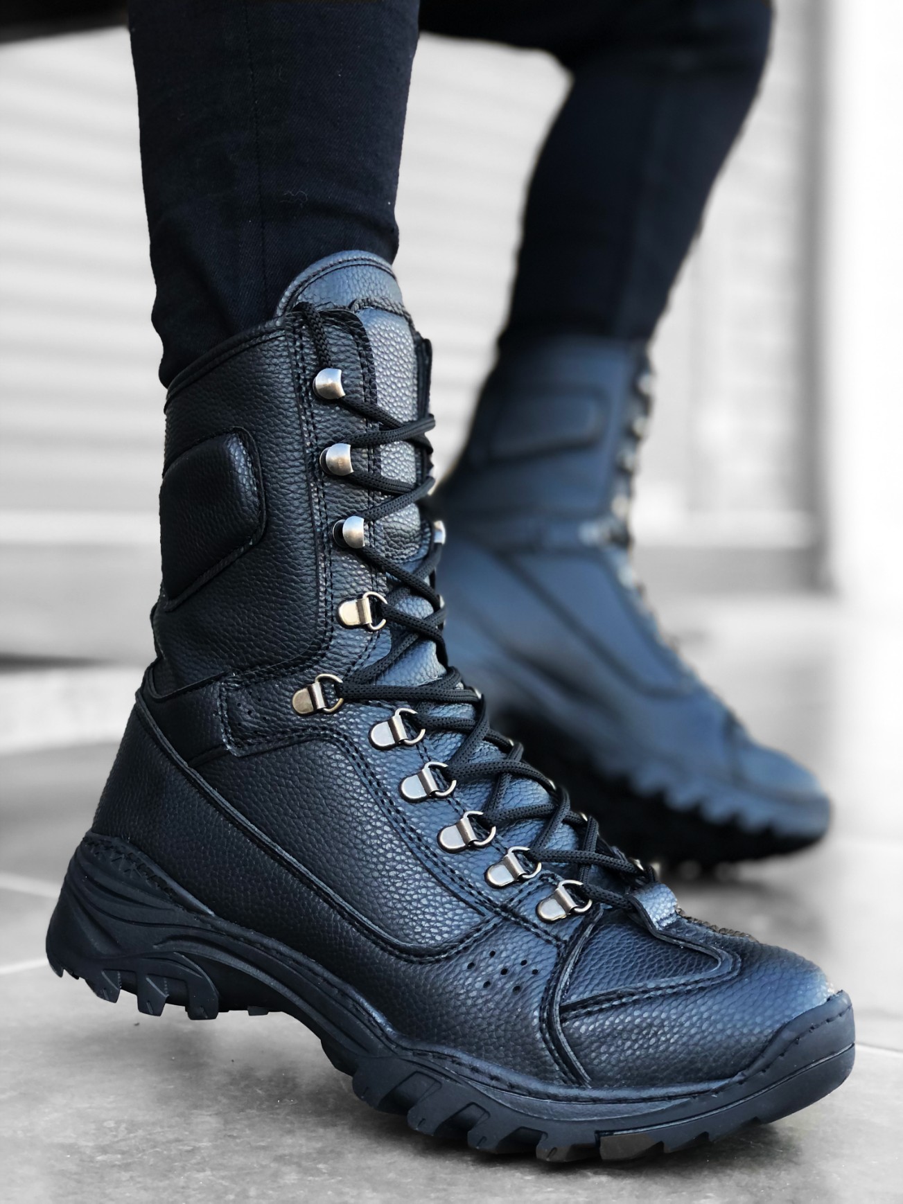 BA0605 Bağcıklı Siyah Cilt Askeri Postal Bot