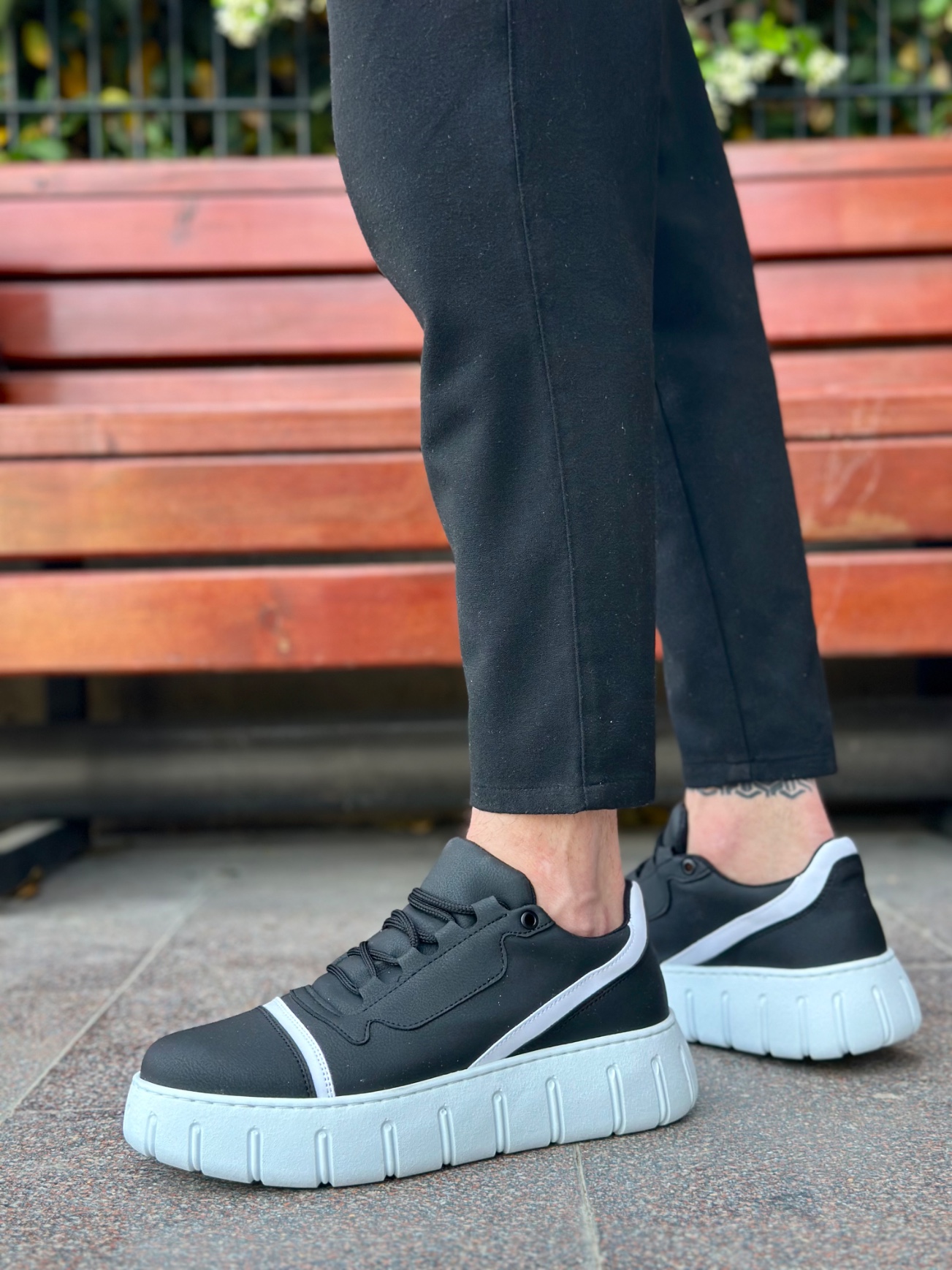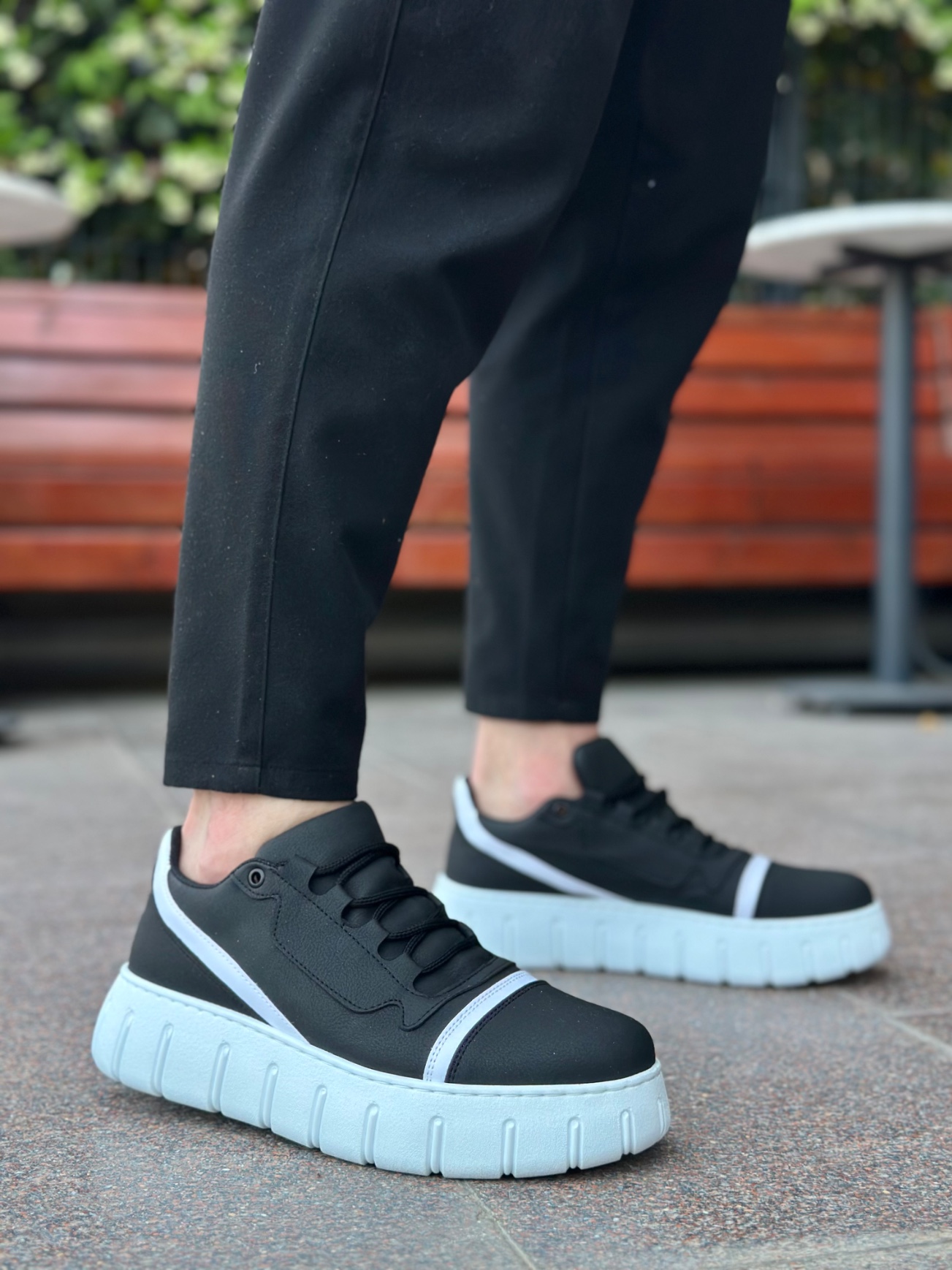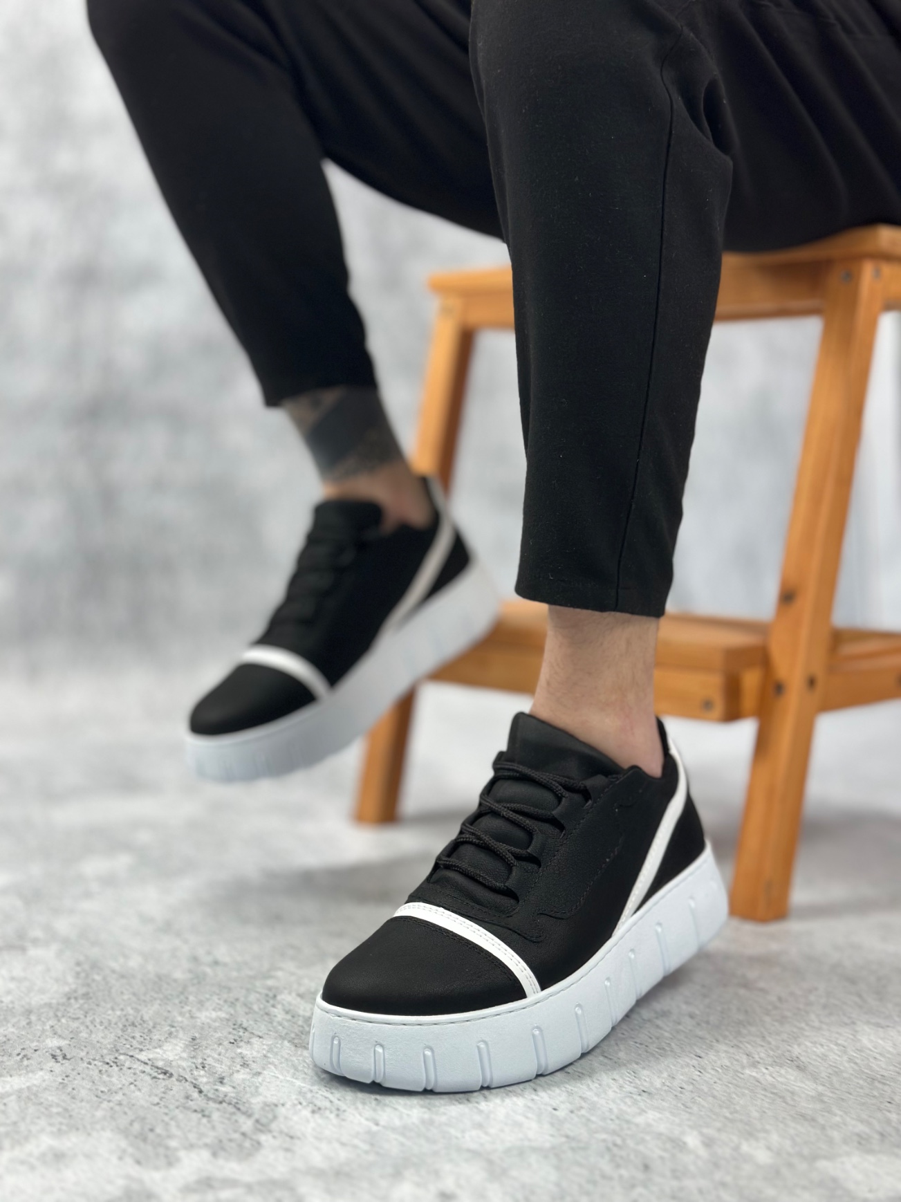 BA0666 BOA Siyah Beyaz Yüksek Taban Erkek Günlük Ayakkabı