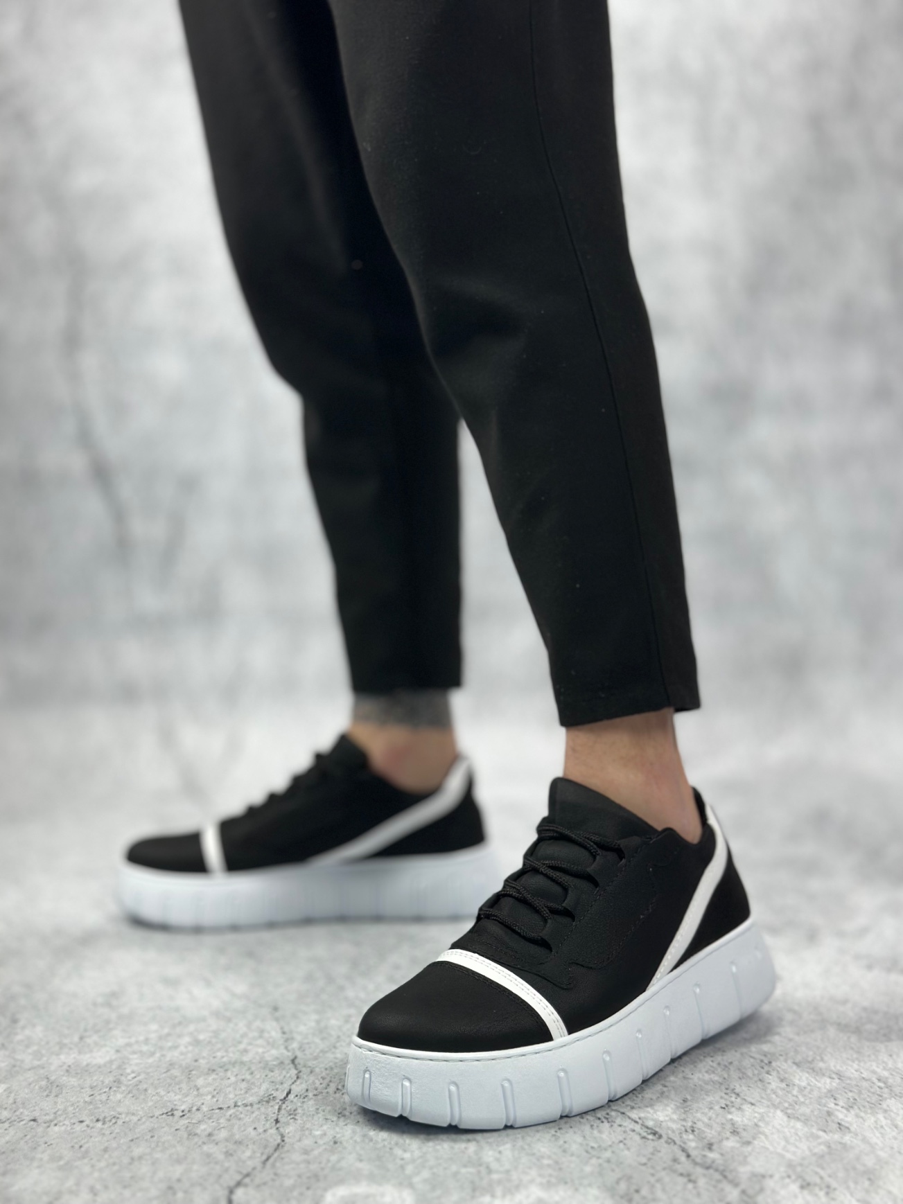 • BA0666 BOA Siyah Beyaz Yüksek Taban Erkek Günlük Ayakkabı
