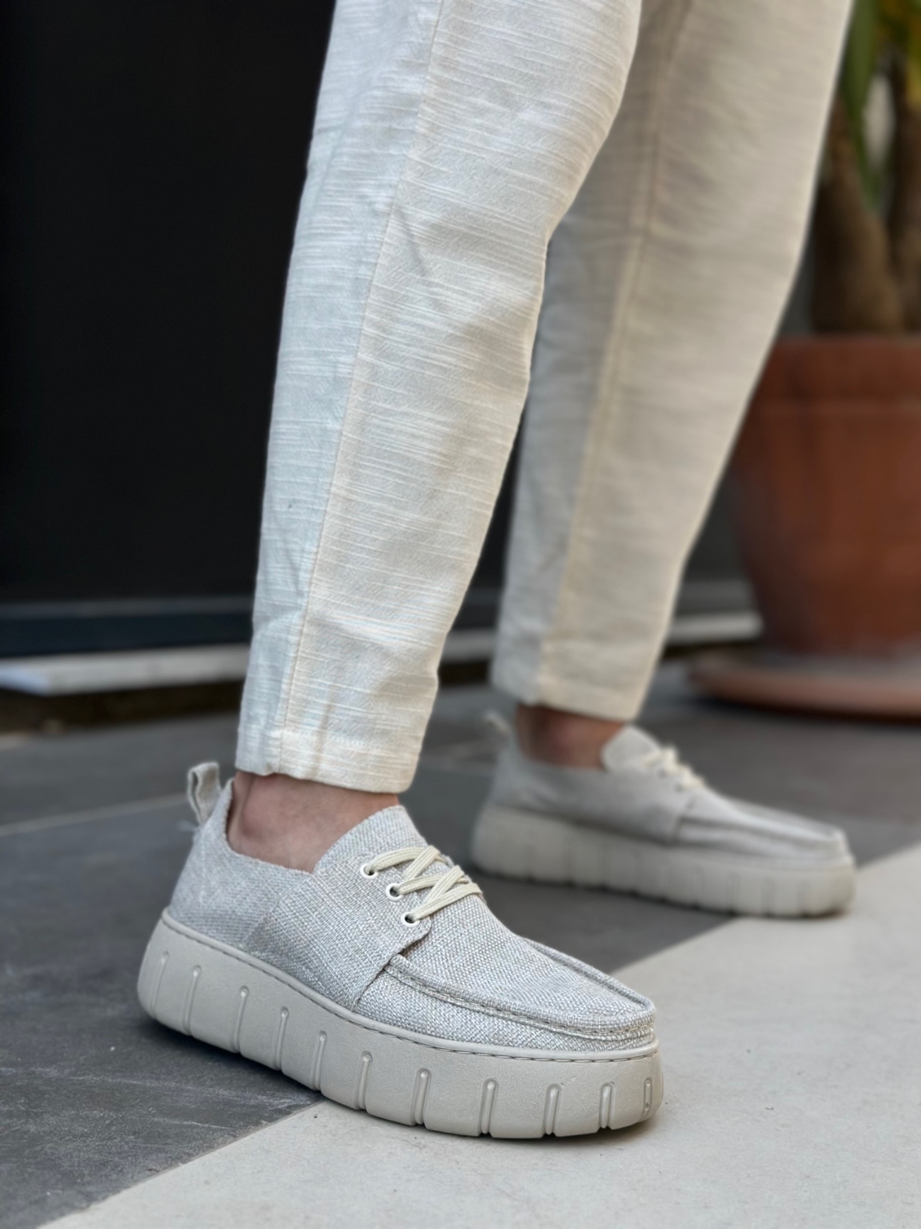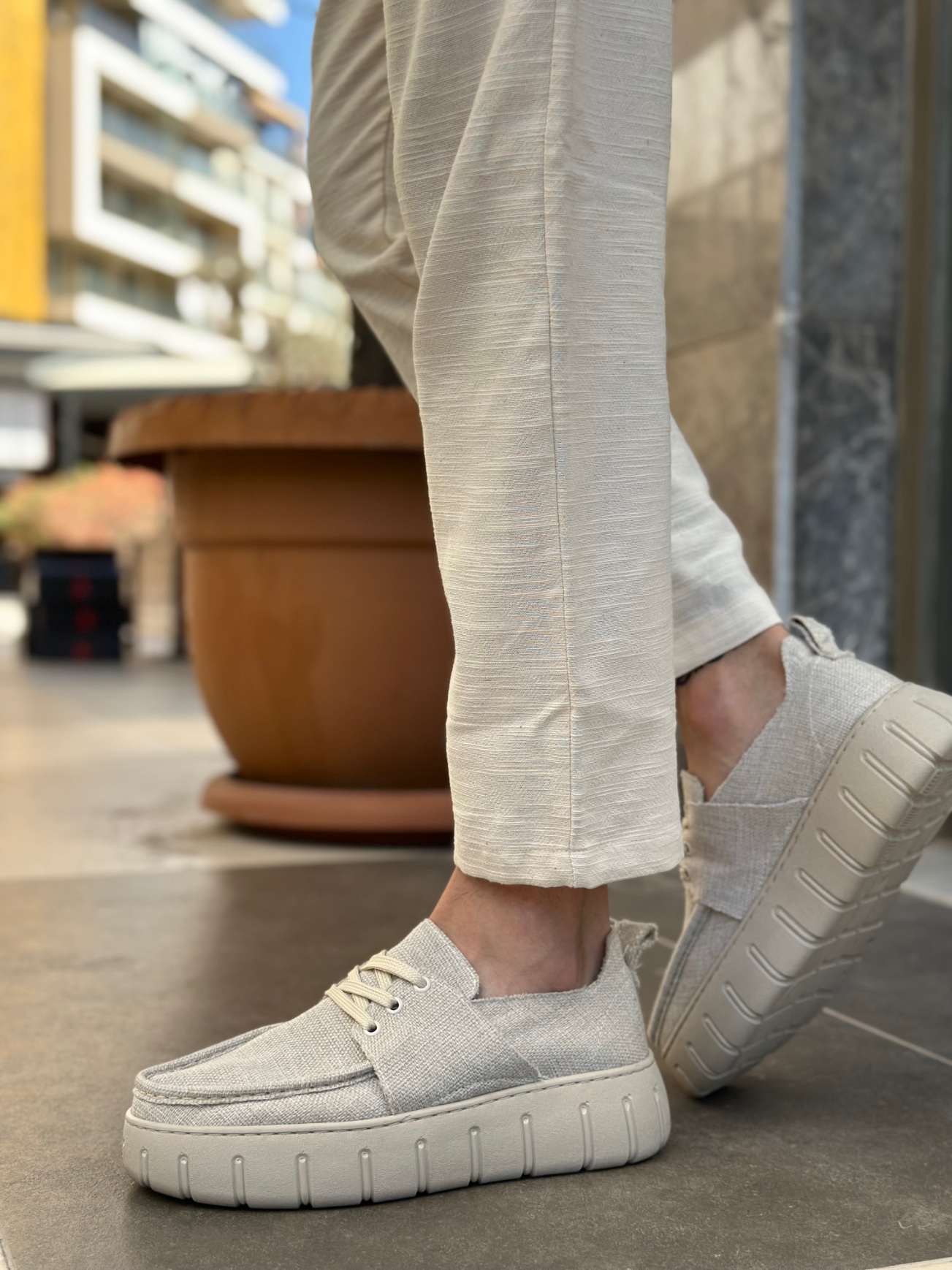 BA0676 BOA Krem Keten Yüksek Taban Erkek Yazlık Ayakkabı