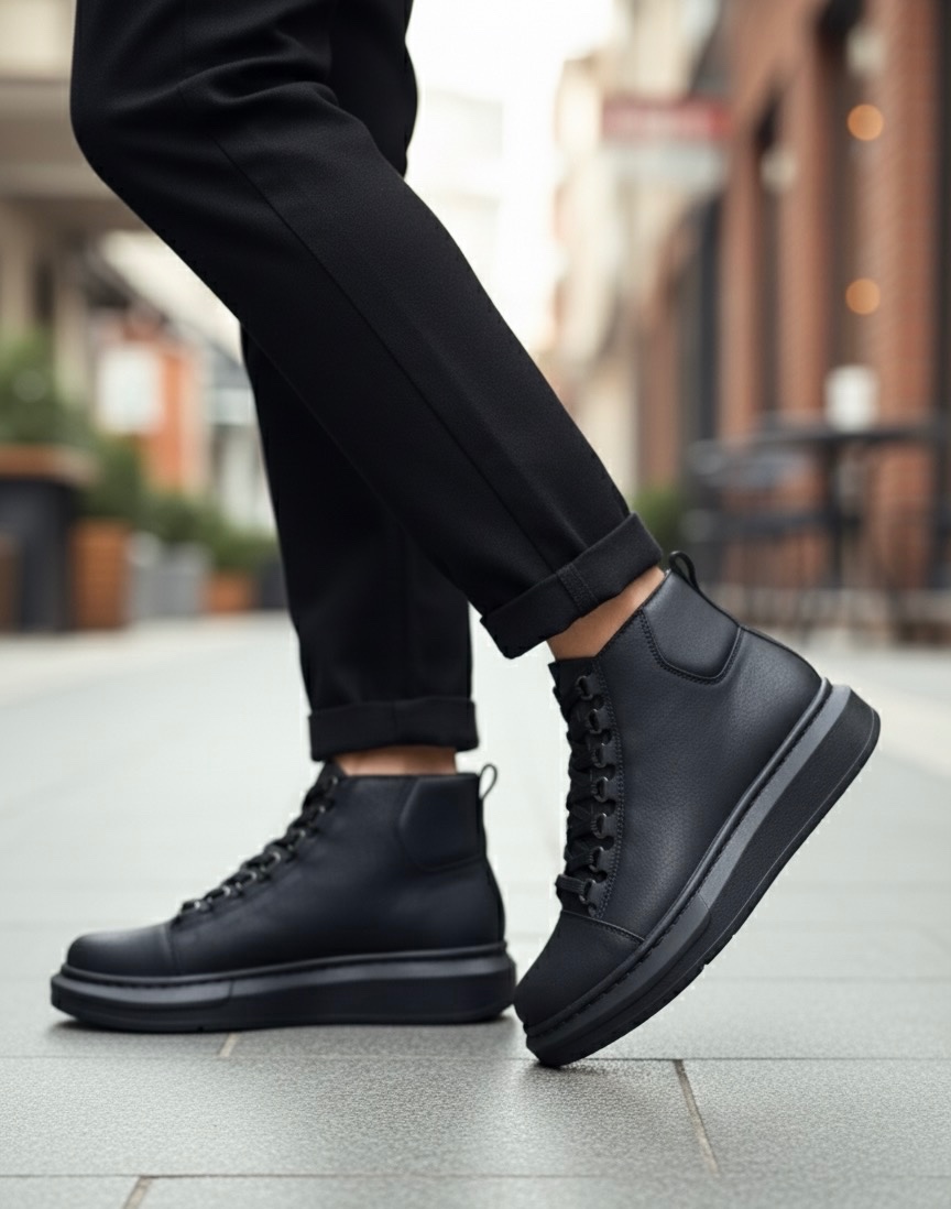 • BA0713 Bağcıklı Yüksek Siyah Taban Erkek Tarz Spor Bot