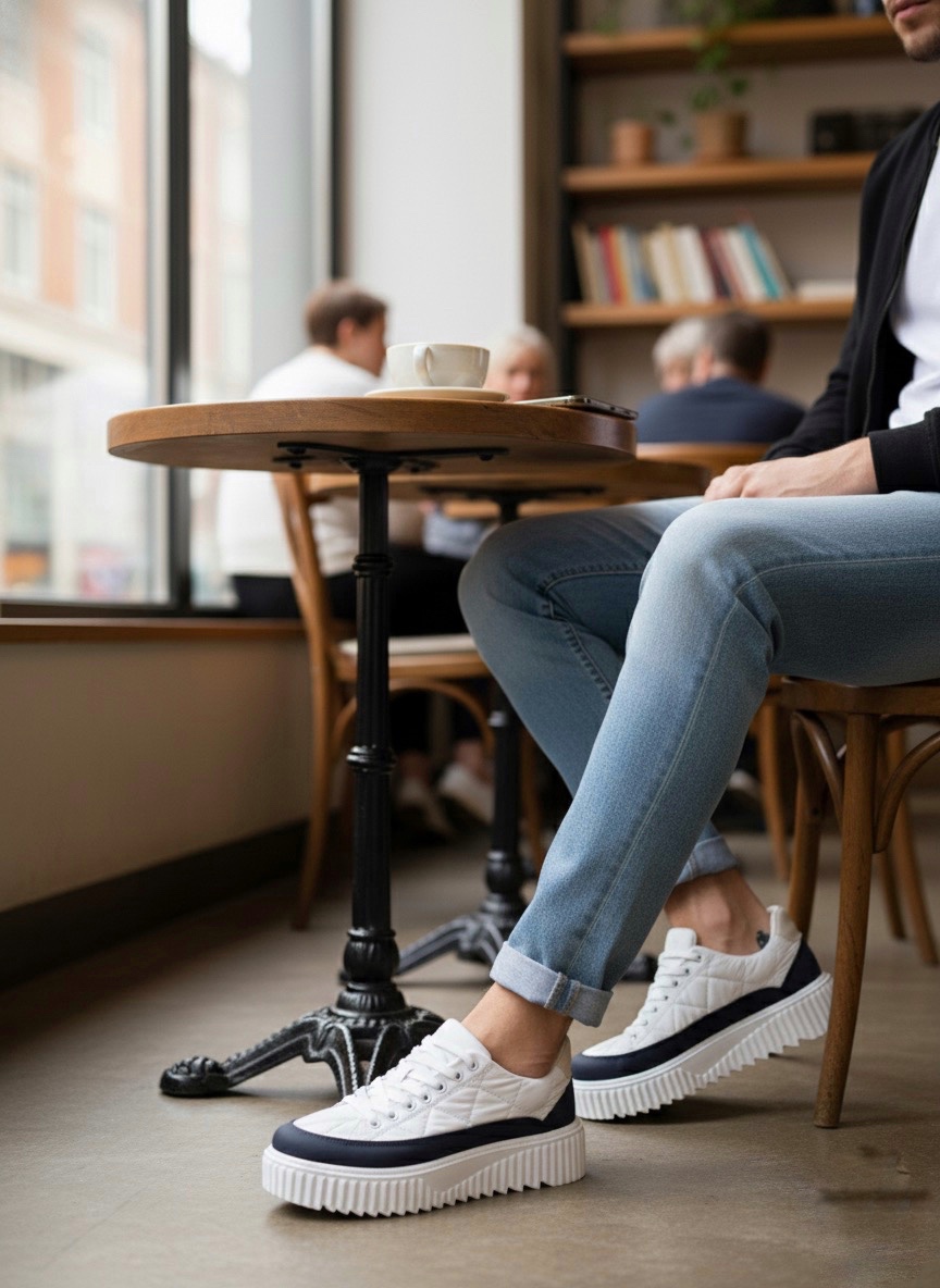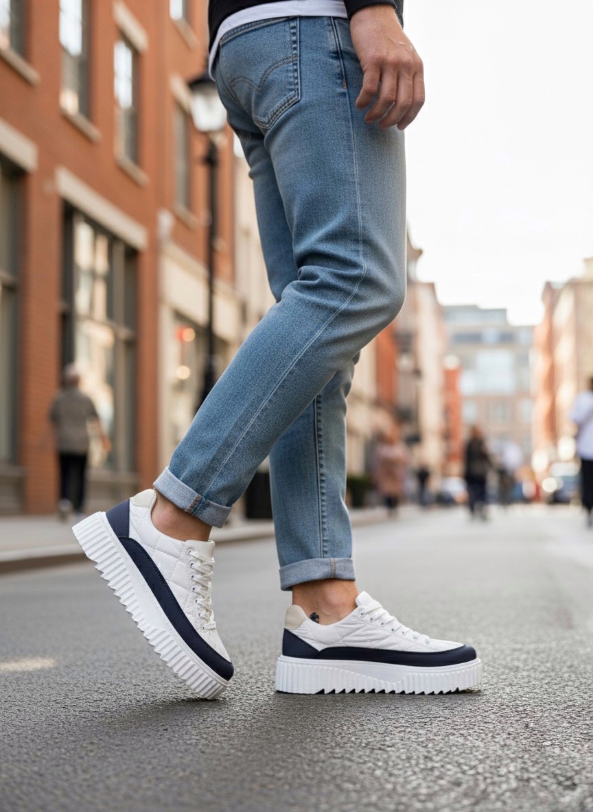 BA0801 BOA Yüksek Taban Beyaz Paraşüt Kumaş Laci Cilt Detaylı Erkek Ayakkabı