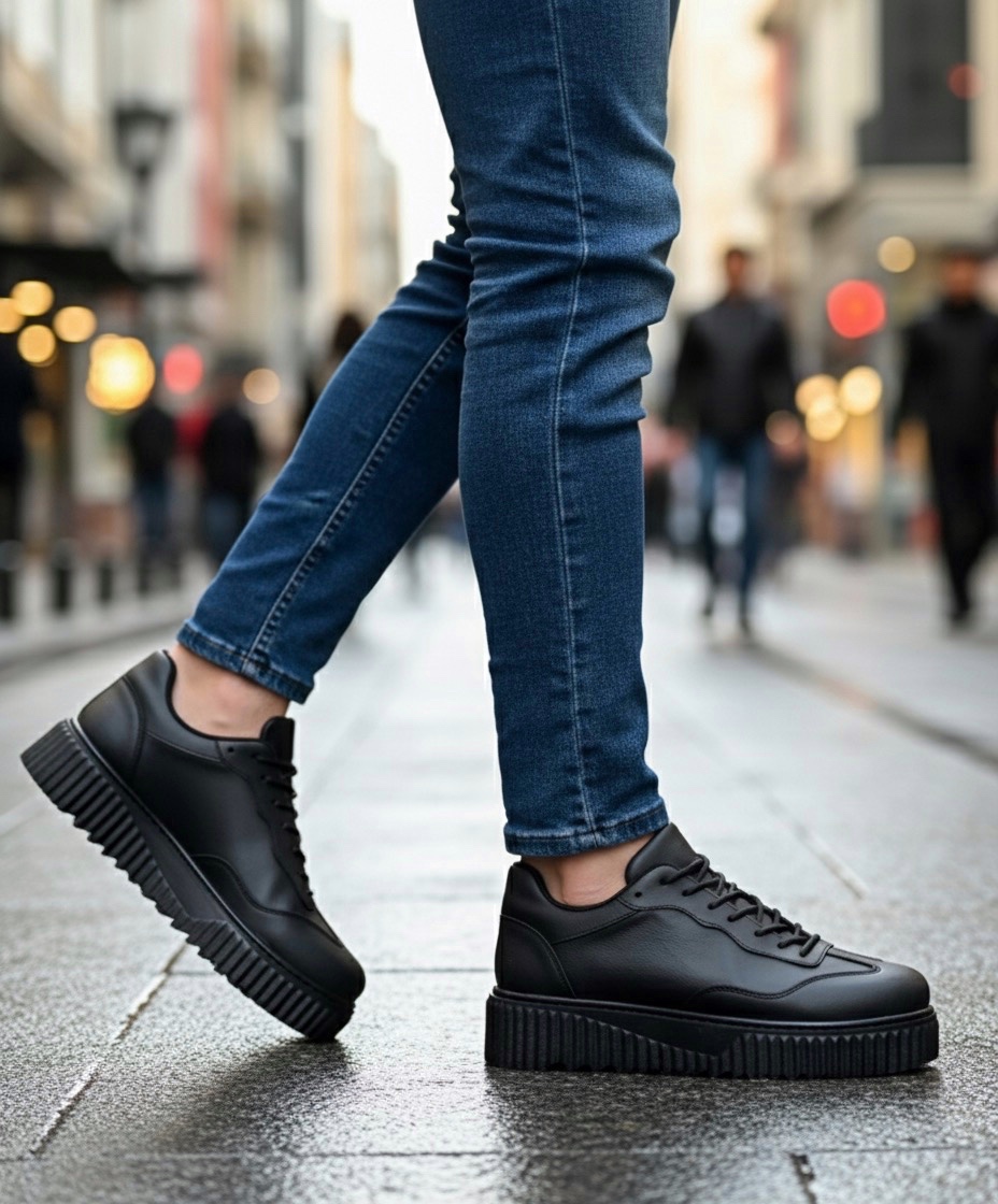 BA0802 BOA Siyah Renk Siyah Yüksek Taban Erkek Günlük Ayakkabı