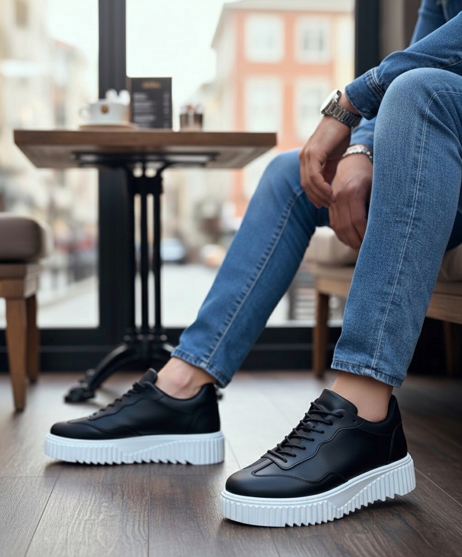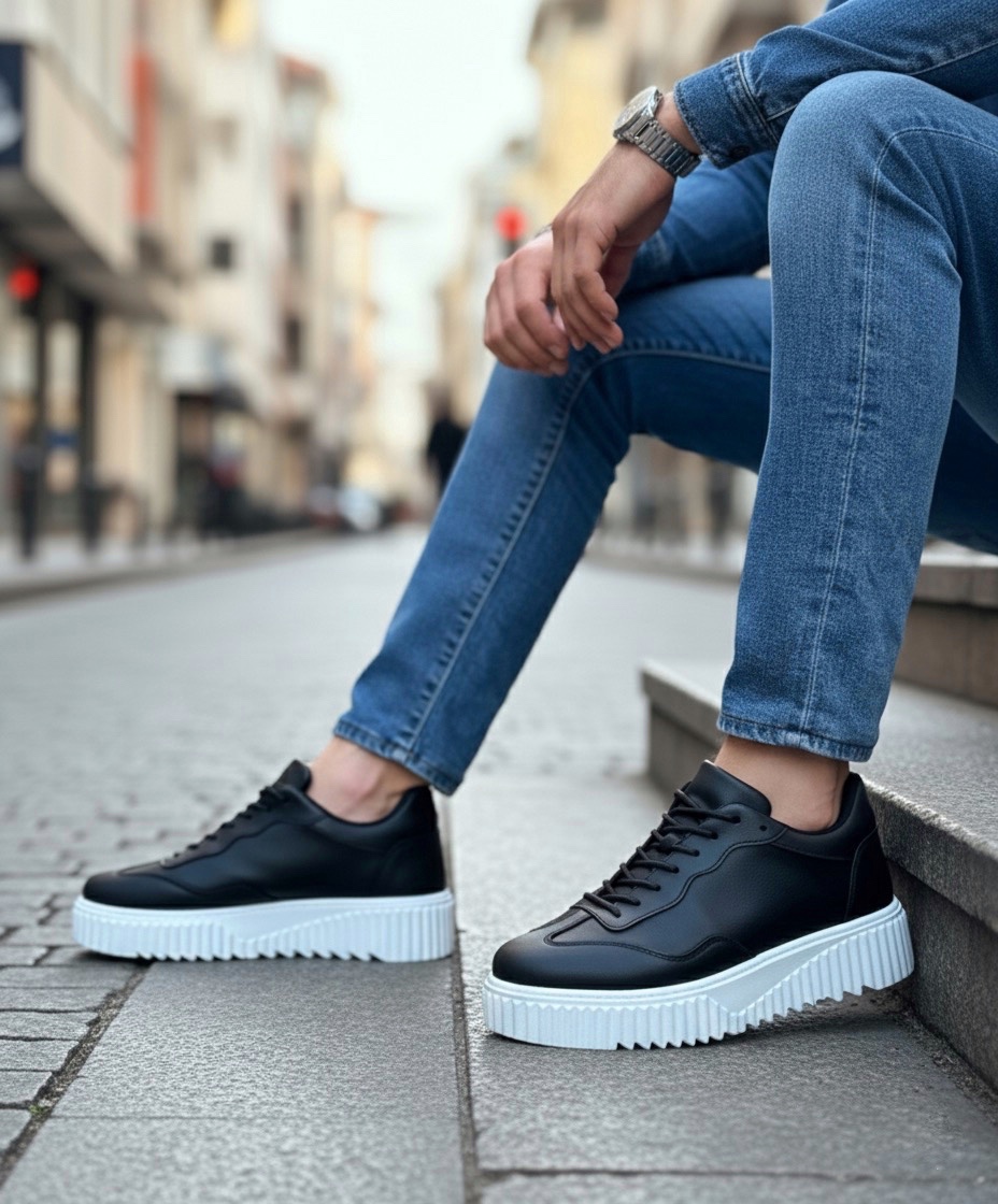 BA0802 BOA Siyah Renk Yüksek Taban Erkek Günlük Ayakkabı