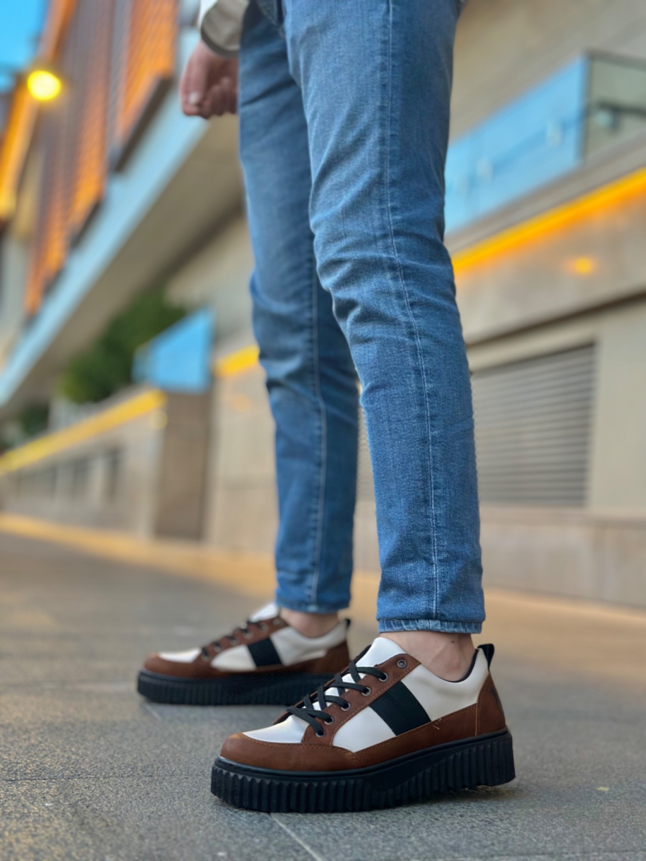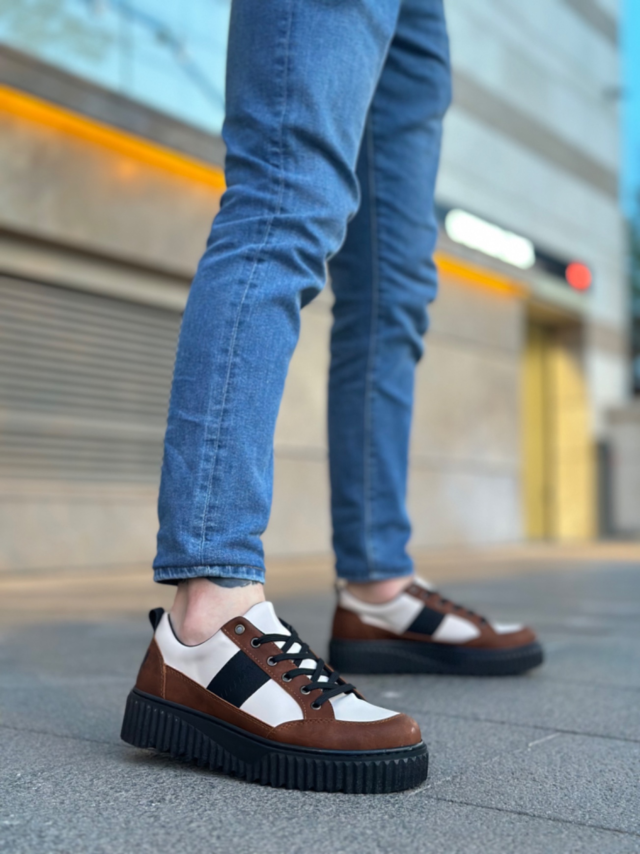 • BA0804 BOA Yüksek Siyah Taban Kahve Detaylı Bağcıklı Erkek Ayakkabı