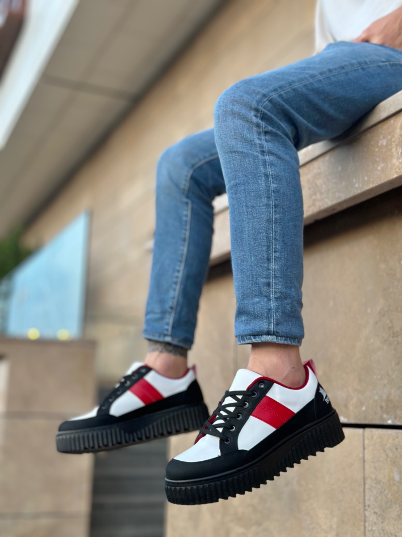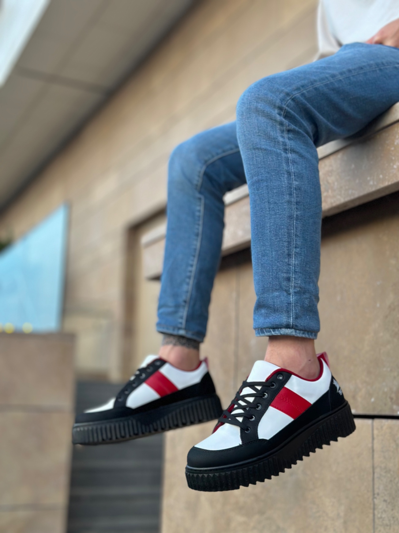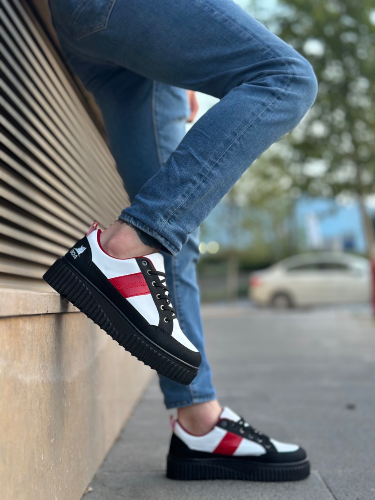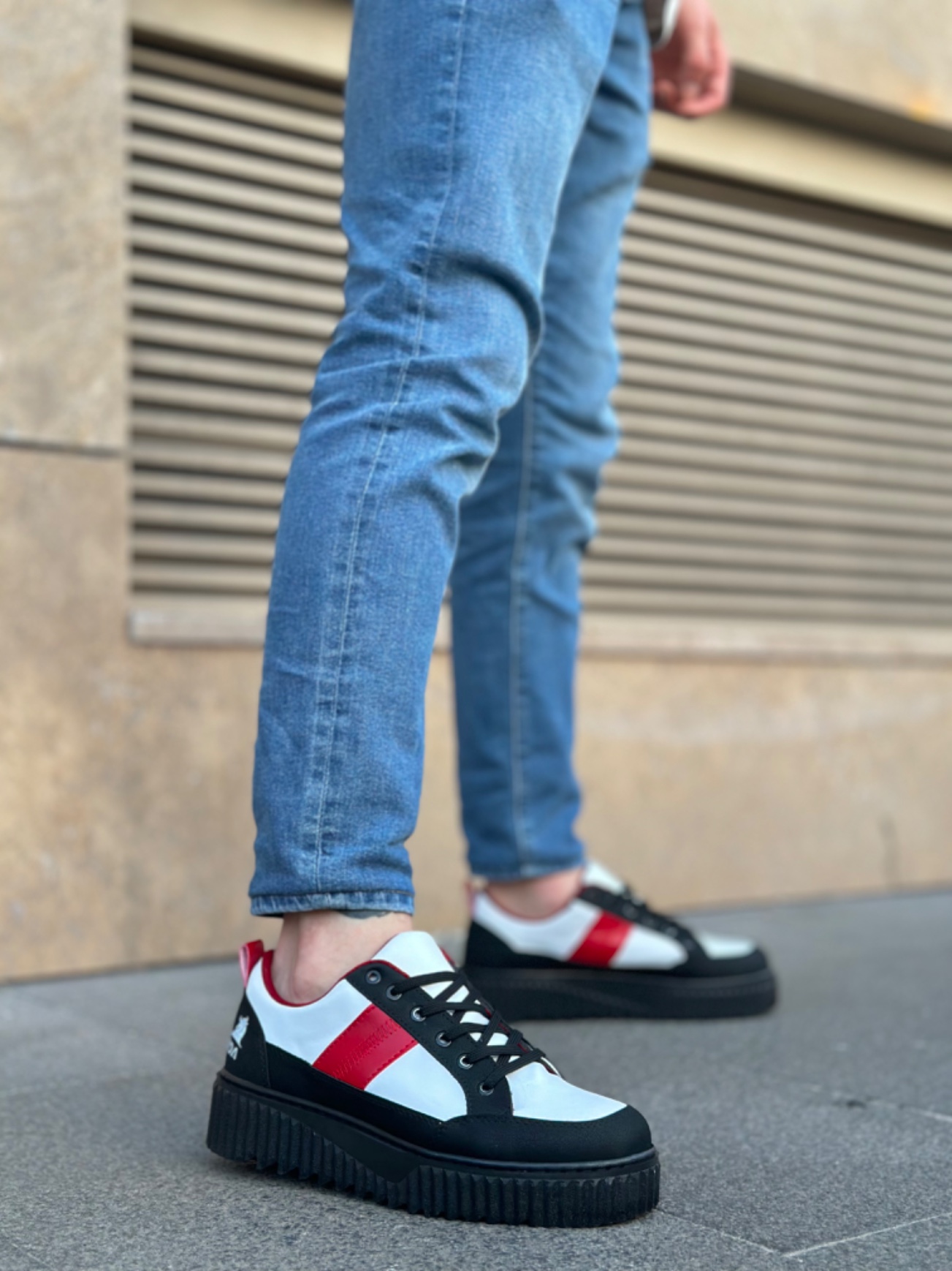 • BA0804 BOA Yüksek Siyah Taban Kırmızı Detaylı Bağcıklı Erkek Ayakkabı