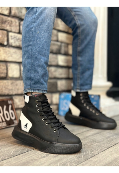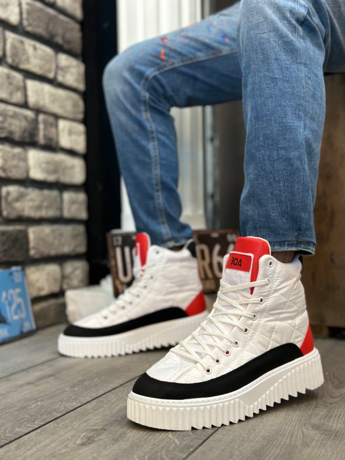BA0811 BOA Yüksek Taban Beyaz Paraşüt Kumaş Kırmızı Cilt Detaylı Erkek Ayakkabı
