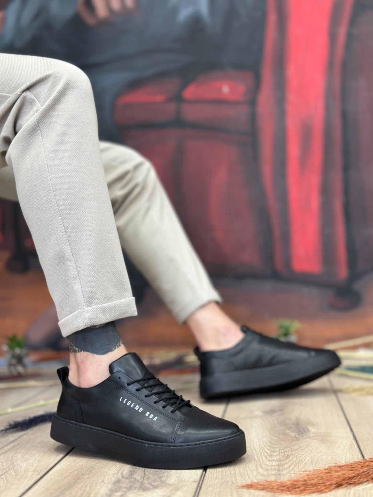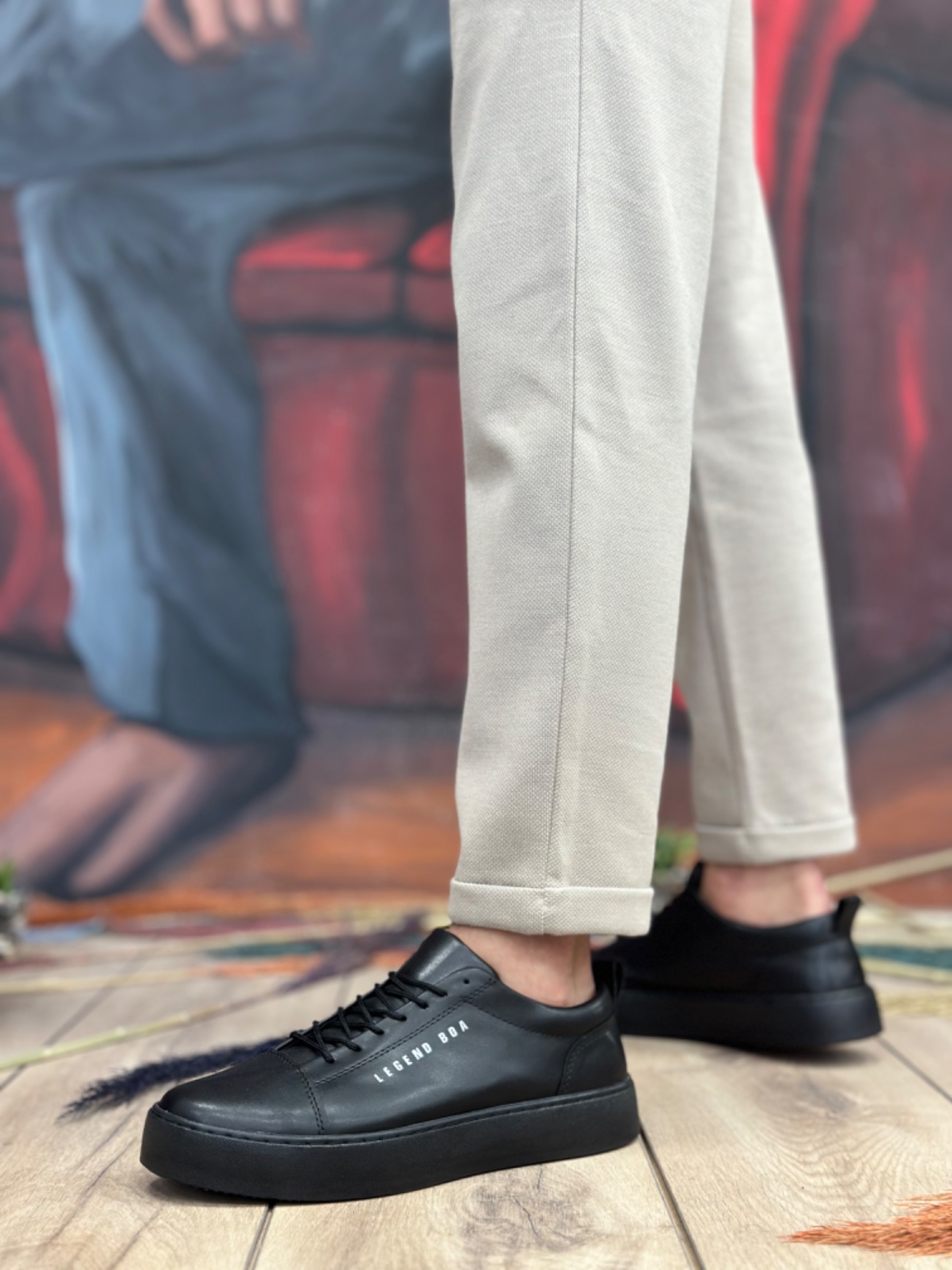 • BA104 BOA Yüksek Siyah Cilt Siyah Taban Bağcıklı Erkek Ayakkabı