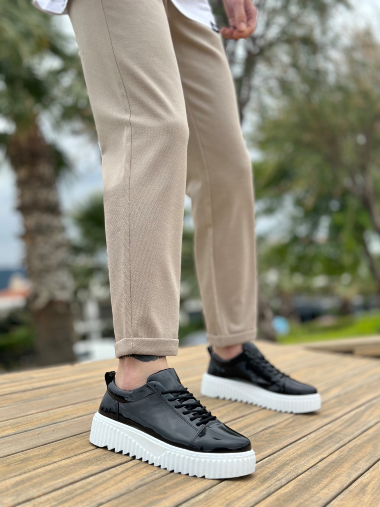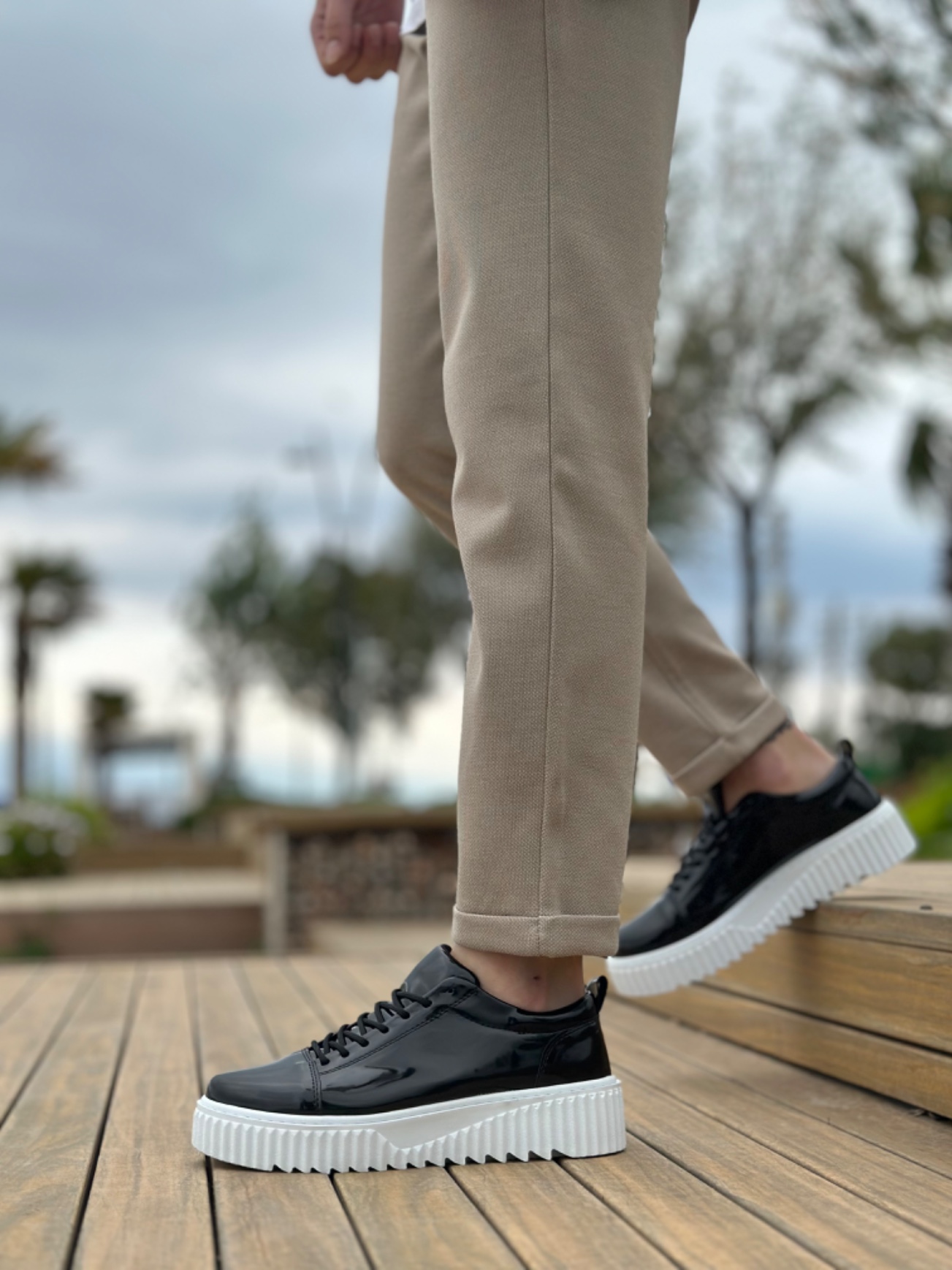 BA8104 BOA Yüksek Siyah Taban Rugan Bağcıklı Erkek Ayakkabı