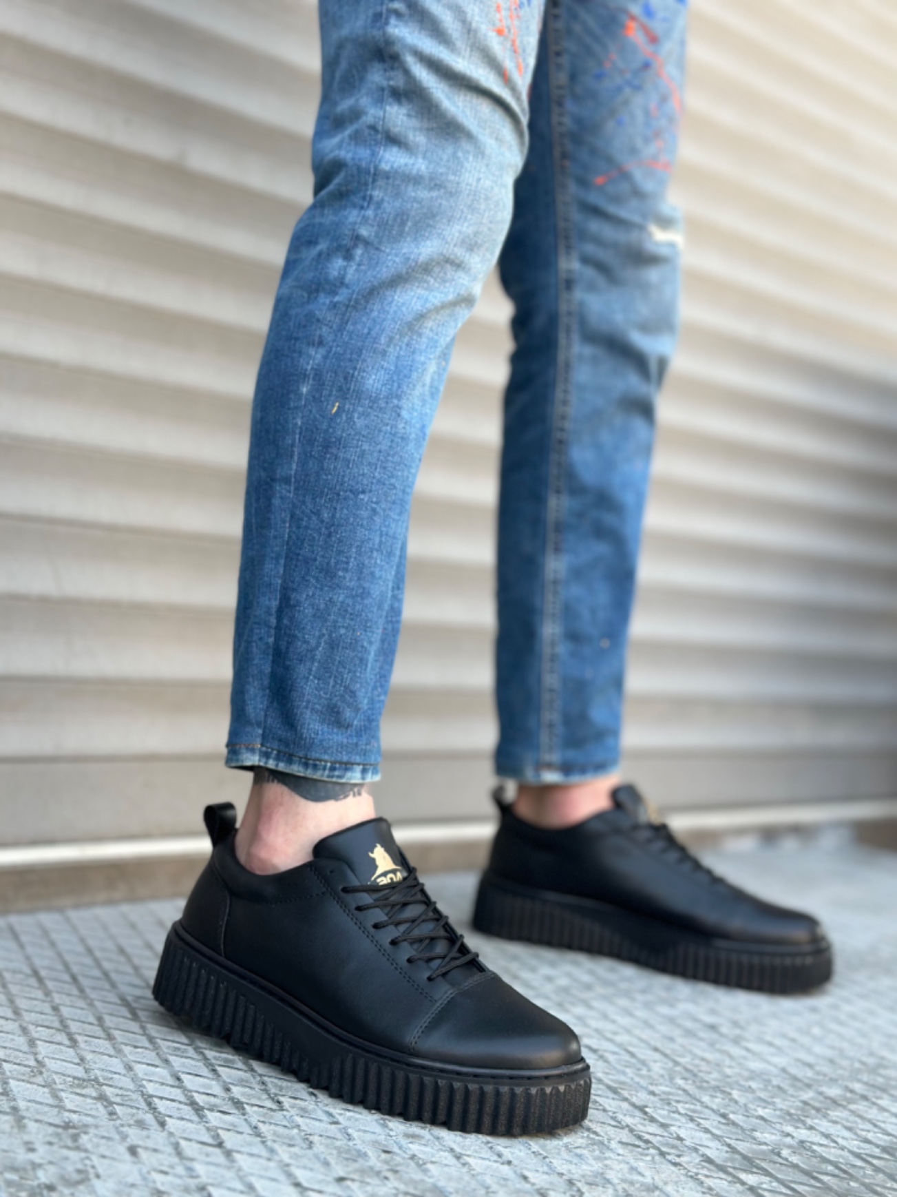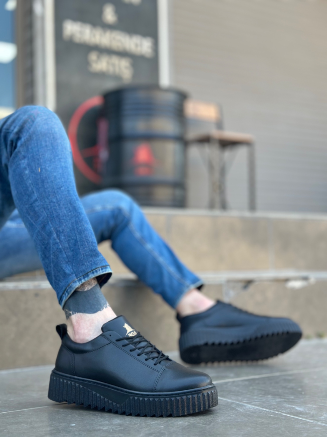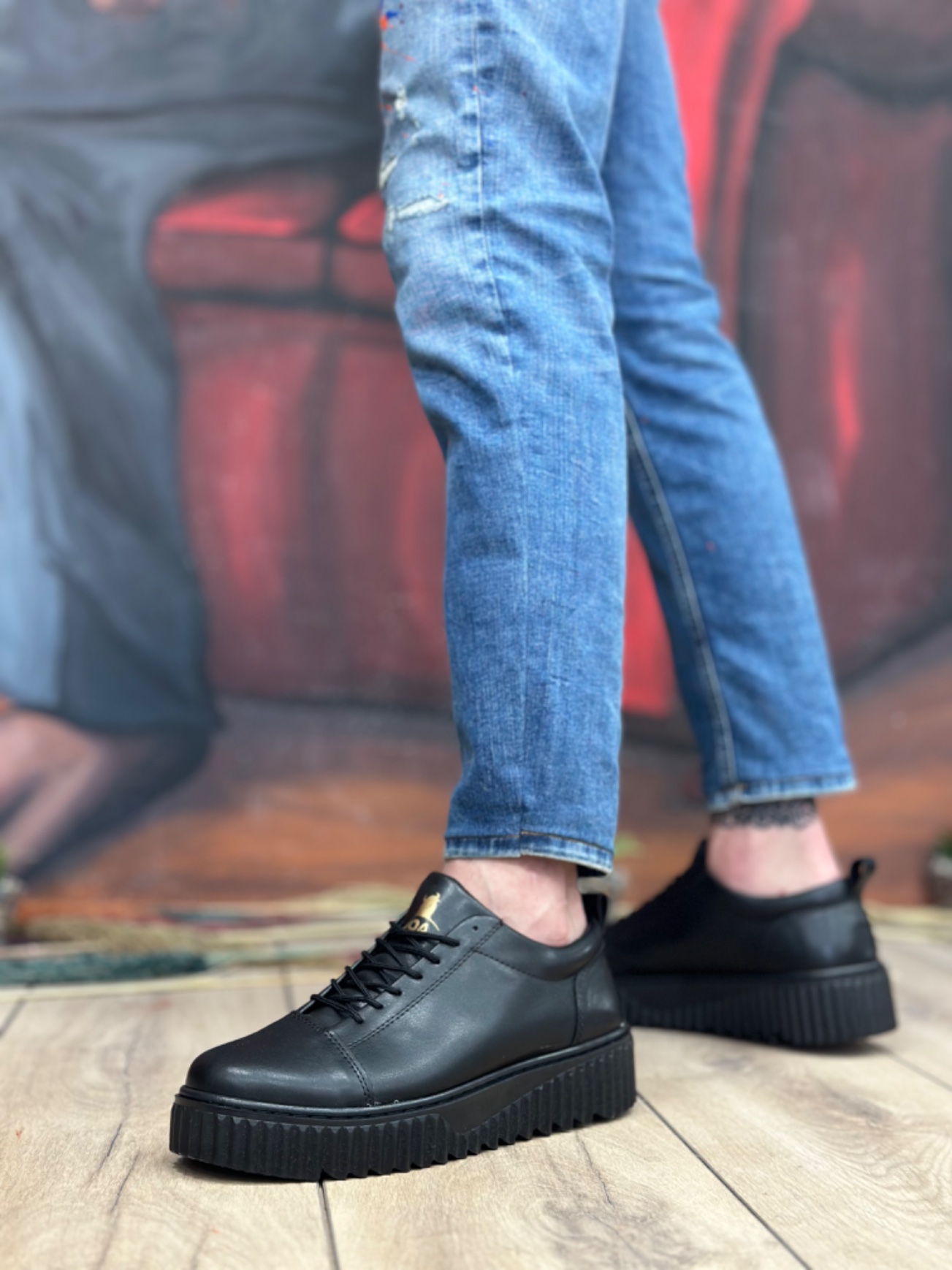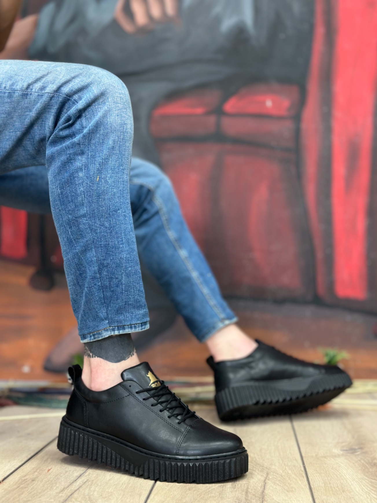 • BA8104 BOA Yüksek Siyah Taban Siyah Cilt Bağcıklı Erkek Ayakkabı