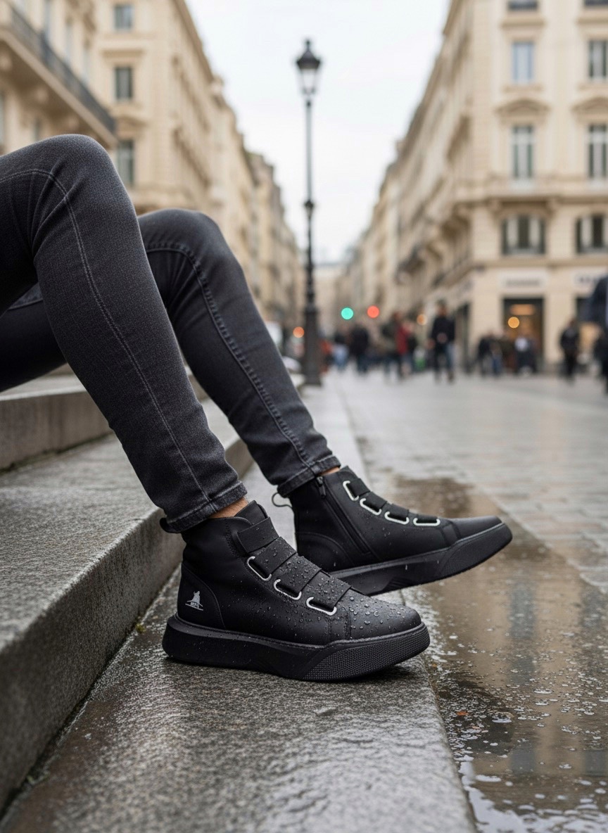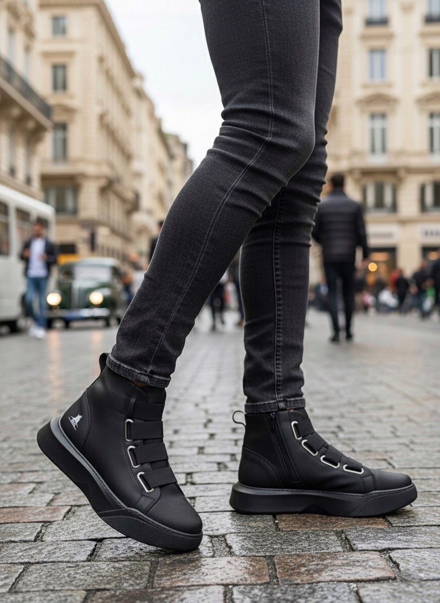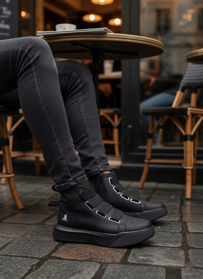 • BA0142 Bantlı Erkek Yüksek Taban Siyah Tabanlı Spor Bot