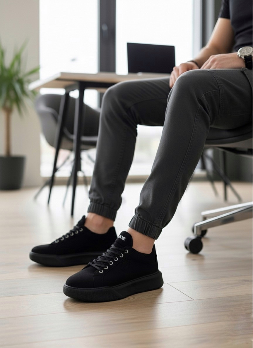 • BA0161 Bağcıklı Erkek Yüksek Taban Siyah Spor Ayakkabı