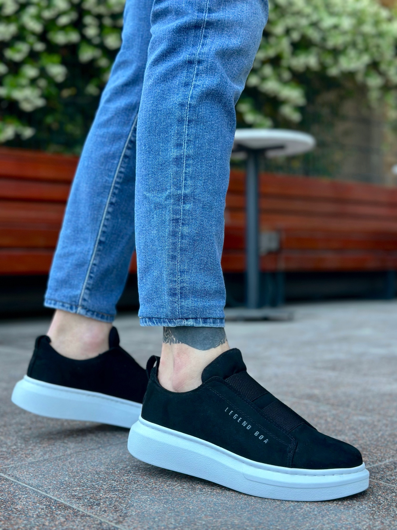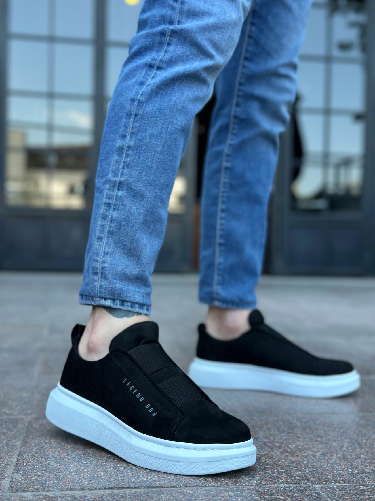 • BA0307 BOA Kalın Süet Çift Bant Siyah Beyaz Taban Erkek Ayakkabı